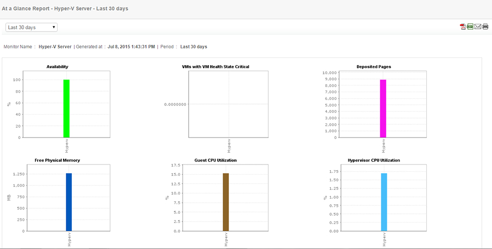 Obtenez des rapports perspicaces sur les performances globales des serveurs Hyper-V. Sachez comment vos serveurs fonctionnent sur une période de temps et analysez les tendances possibles.