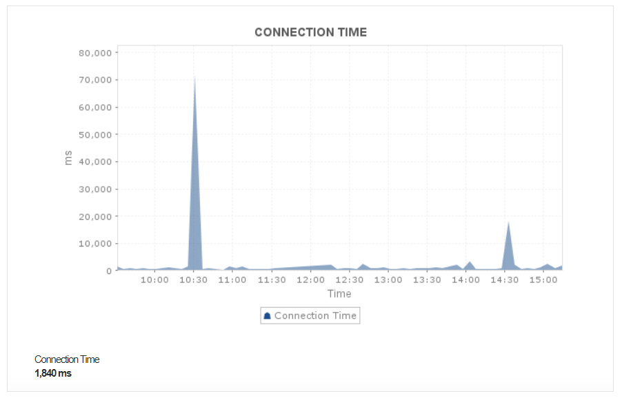 Le temps de connexion correspond à la durée nécessaire pour qu’Applications Manager se connecte au serveur de réplication Sybase. Si vous observez une hausse de cette valeur, il est possible qu’un décalage ou un problème réseau en soit la cause.