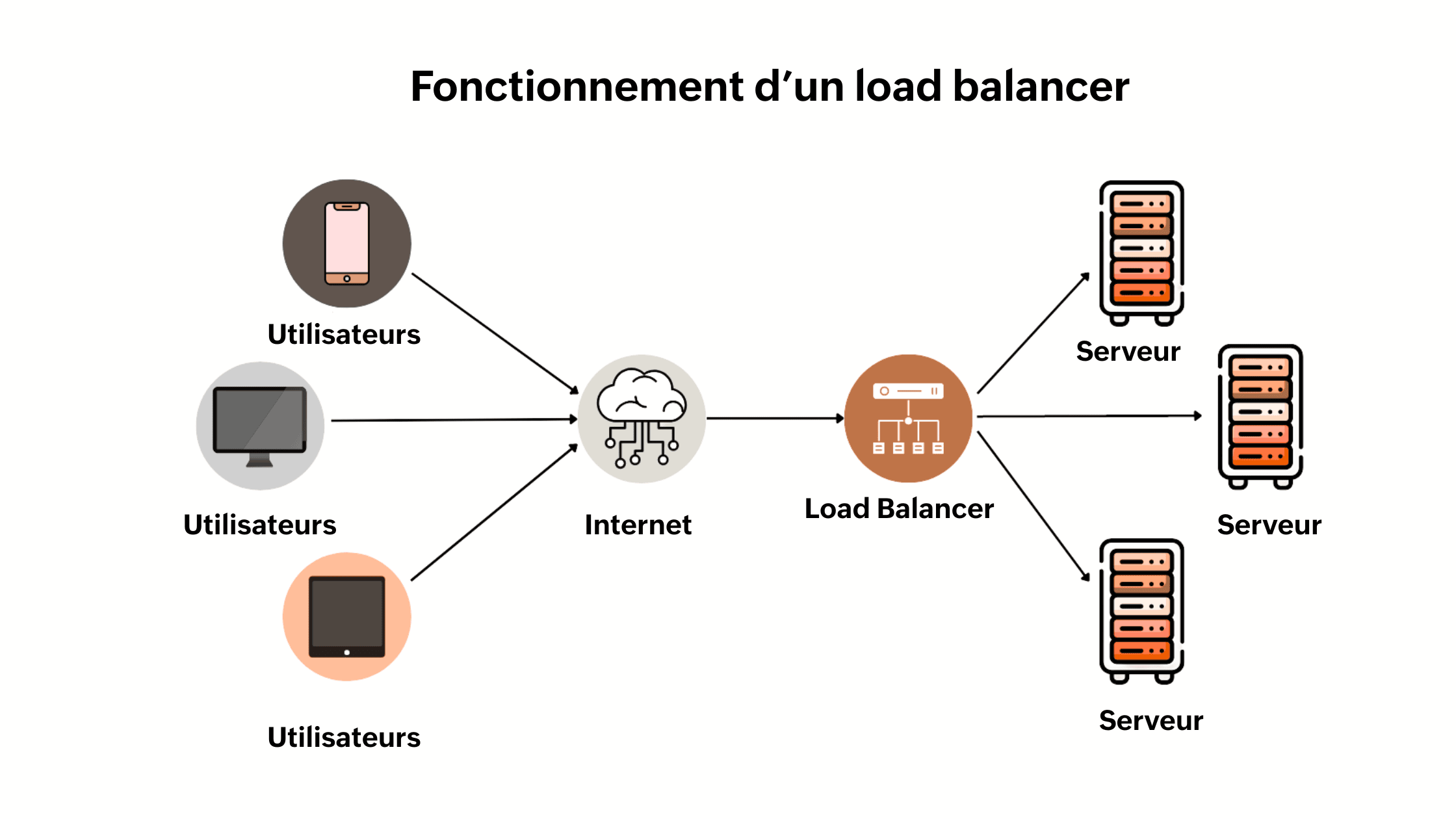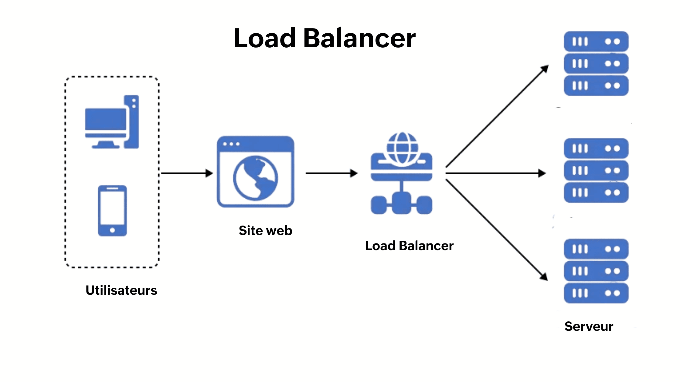 À chaque requête, le load balancer choisit le serveur le plus adapté afin d’assurer une répartition équilibrée, une haute disponibilité et une expérience utilisateur fluide.