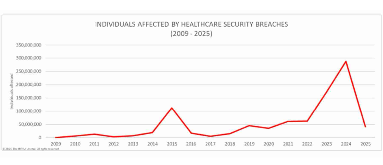 L’année 2024 a marqué un record en matière d’impact des cyberattaques dans la santé, avec 14 violations de données affectant plus d’un million d’enregistrements chacune, et la plus importante violation de données de santé jamais recensée, touchant plus de 190 millions de personnes.