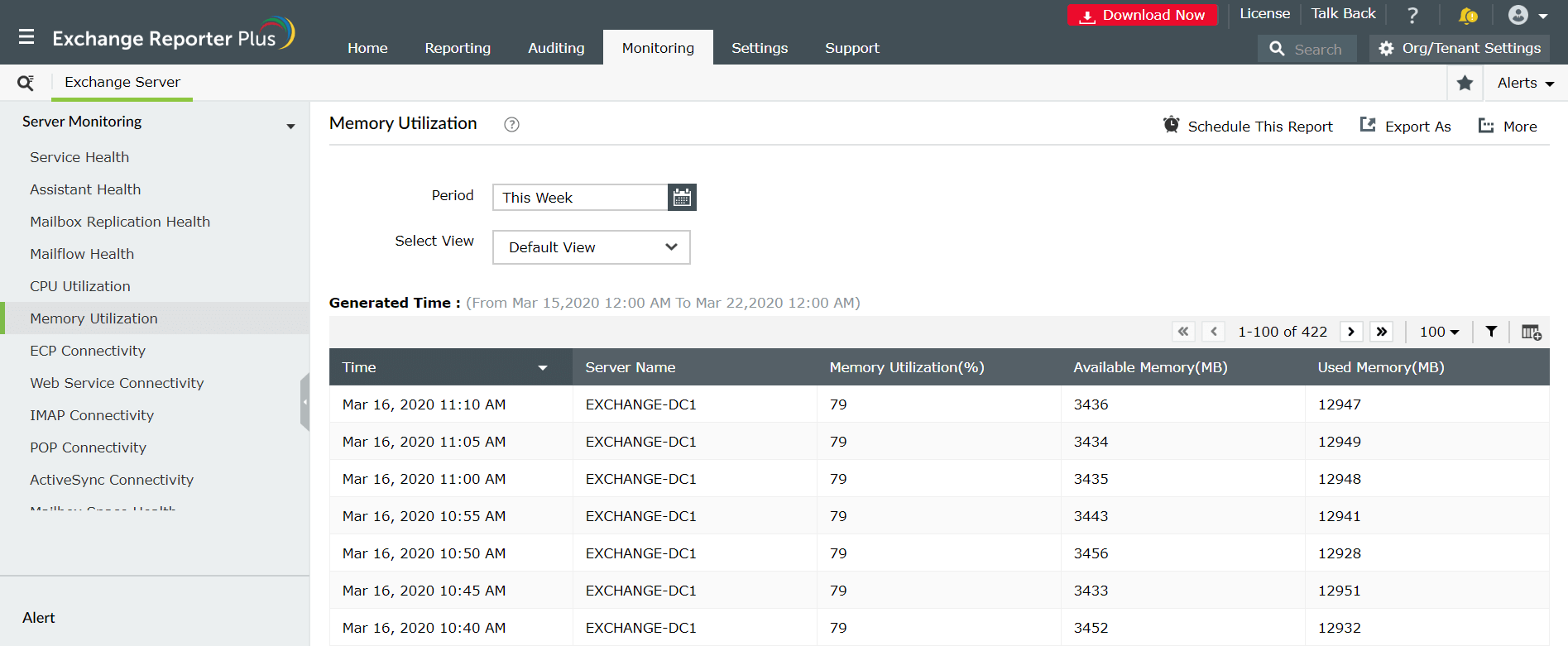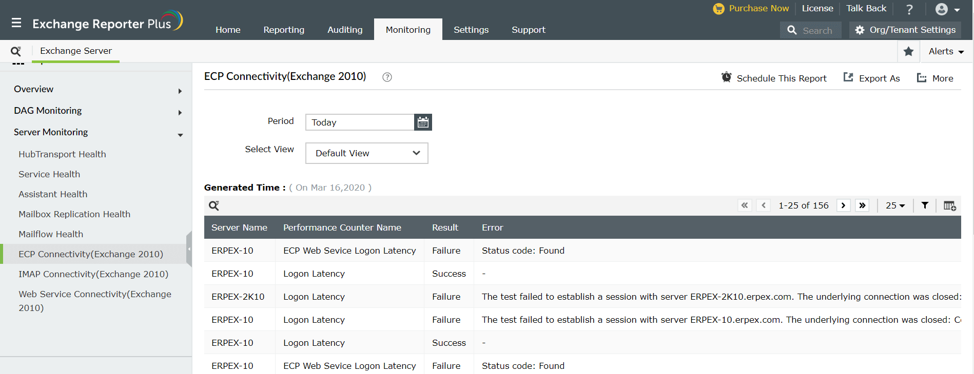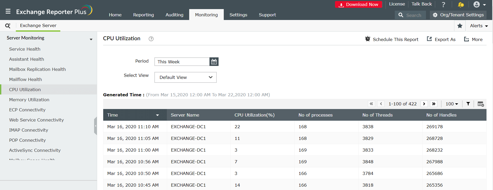 Téléchargez ces rapports de contrôle d’intégrité Exchange Server dans divers formats comme CSV, XLS, HTML et PDF. Vous pouvez aussi planifier ces rapports et les faire envoyer automatiquement à votre adresse électronique. En savoir plus sur les rapports d’analyse de ManageEngine Exchange Reporter Plus ici.