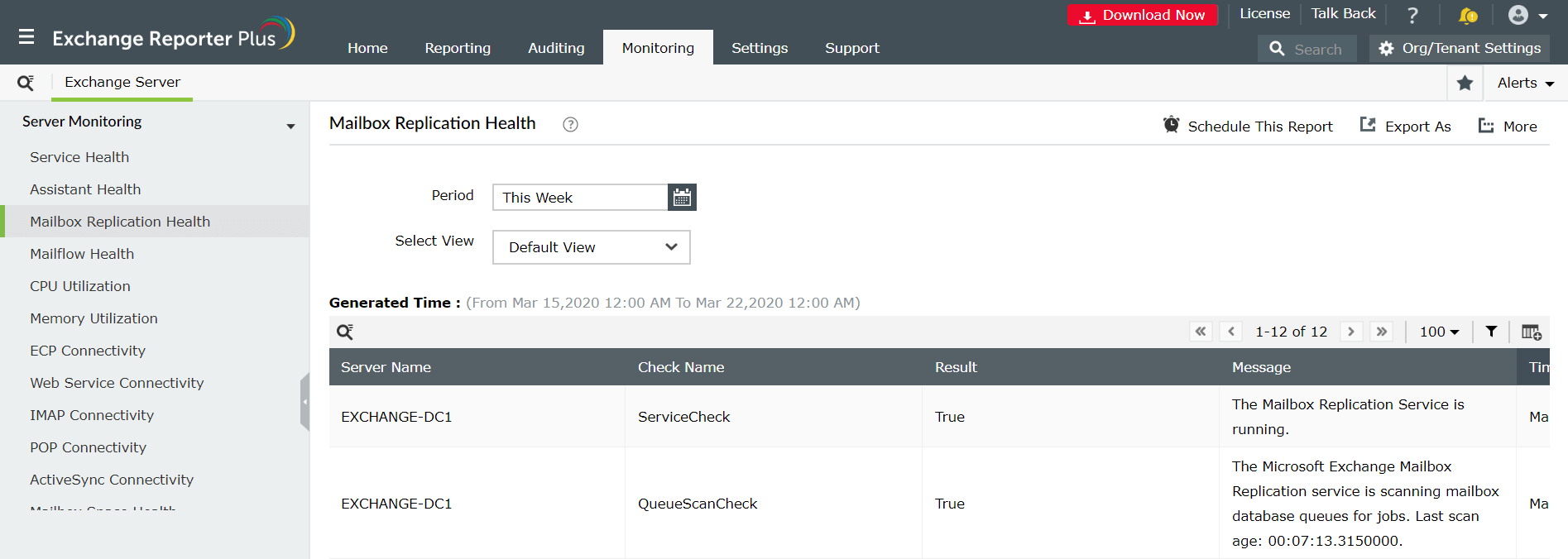Affichez des détails importants sur l’état de réplication des boîtes aux lettres Exchange et les erreurs connexes avec ce rapport d’analyse. L’outil utilise l’applet de commande PowerShell test-MRShealth pour collecter des données d’Exchange Server et les afficher dans un rapport clair.