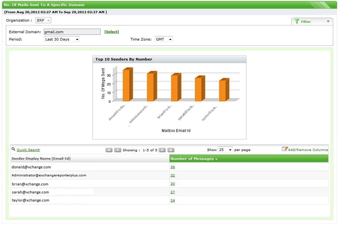 Quelle que soit sa taille, chaque entreprise met en place des plans et des politiques pour suivre le trafic Internet en son sein. De telles mesures agissent comme une couche protectrice qui sécurise les données opérationnelles sensibles. Pour répondre à ce besoin essentiel, Exchange Reporter Plus offre des rapports sur le trafic Internet global. Ces rapports suivent les messages électroniques au-delà du périmètre Exchange et procurent aux administrateurs Exchange une information en temps réel avec une analyse complète du trafic Internet.