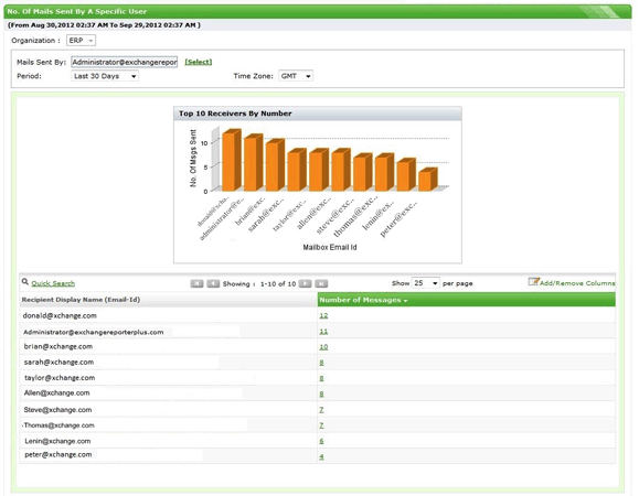 - Suivre les principaux utilisateurs Exchange qui envoient un volume de trafic maximum aux destinataires personnalisés en termes de nombre de messages et de taille.