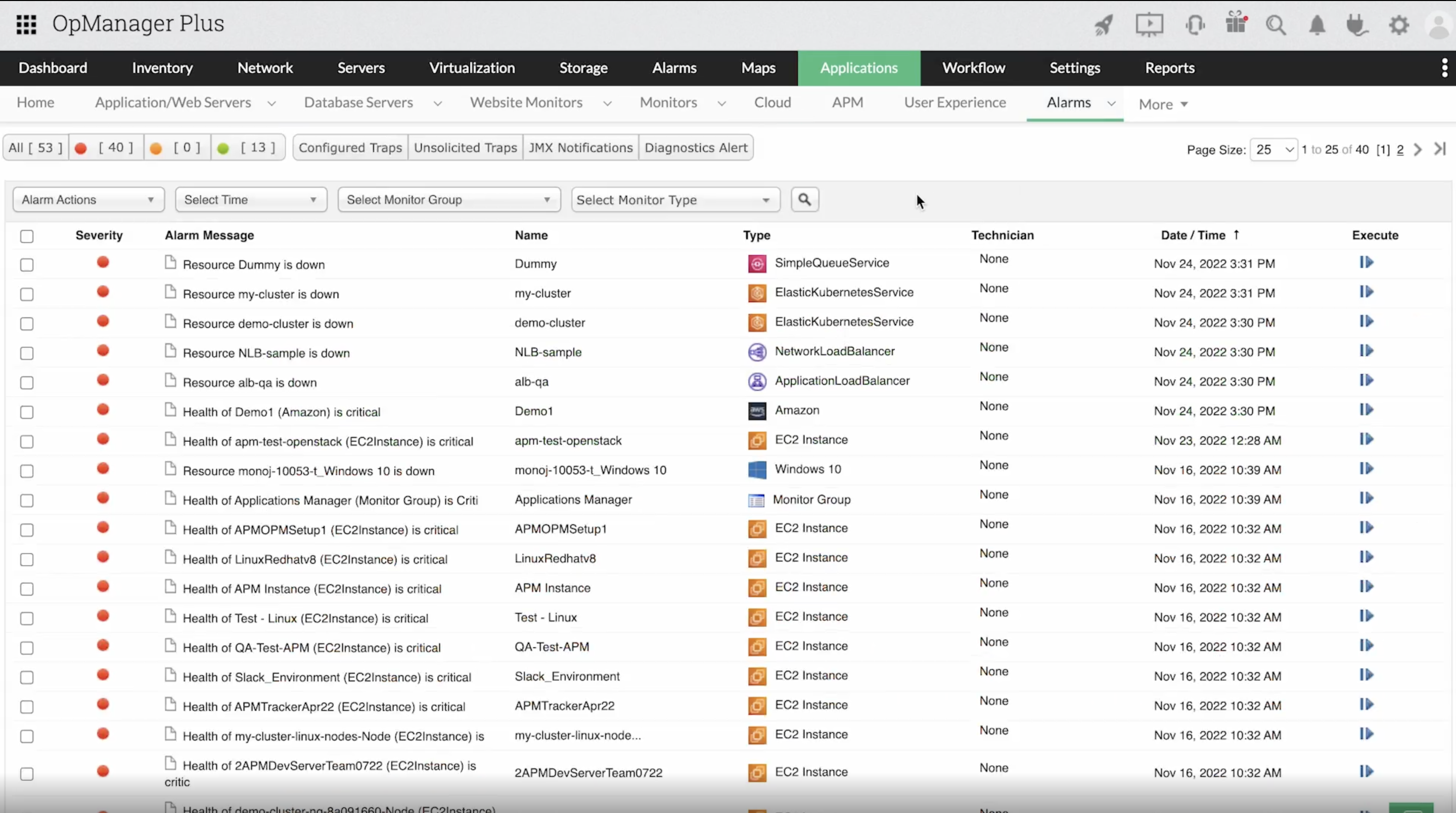 OpManager Plus suit de près l’infrastructure cloud et envoie des alertes instantanées en cas d’incident. Ces alertes donnent des détails sur le problème et aident à le résoudre rapidement. Les alertes intelligentes à moteur AIOps aident aussi à réduire le MTTR et éviter un trop-plein.