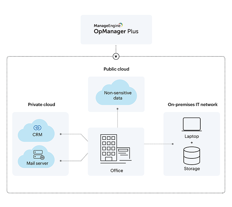 ManageEngine OpManager Plus, solution d’analyse complète compatible avec une large gamme de fournisseurs, permet de suivre la performance de l’infrastructure de cloud hybride ou multicloud dans une seule console.