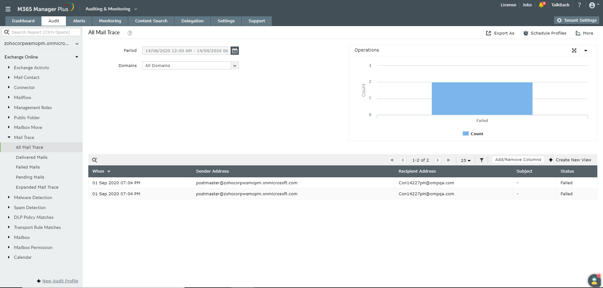 - Audit en temps réel : Au lieu de collecter les données associées pour les rapports d'audit à chaque fois, M365 Manager Plus maintient les rapports d'audit à jour en temps réel.