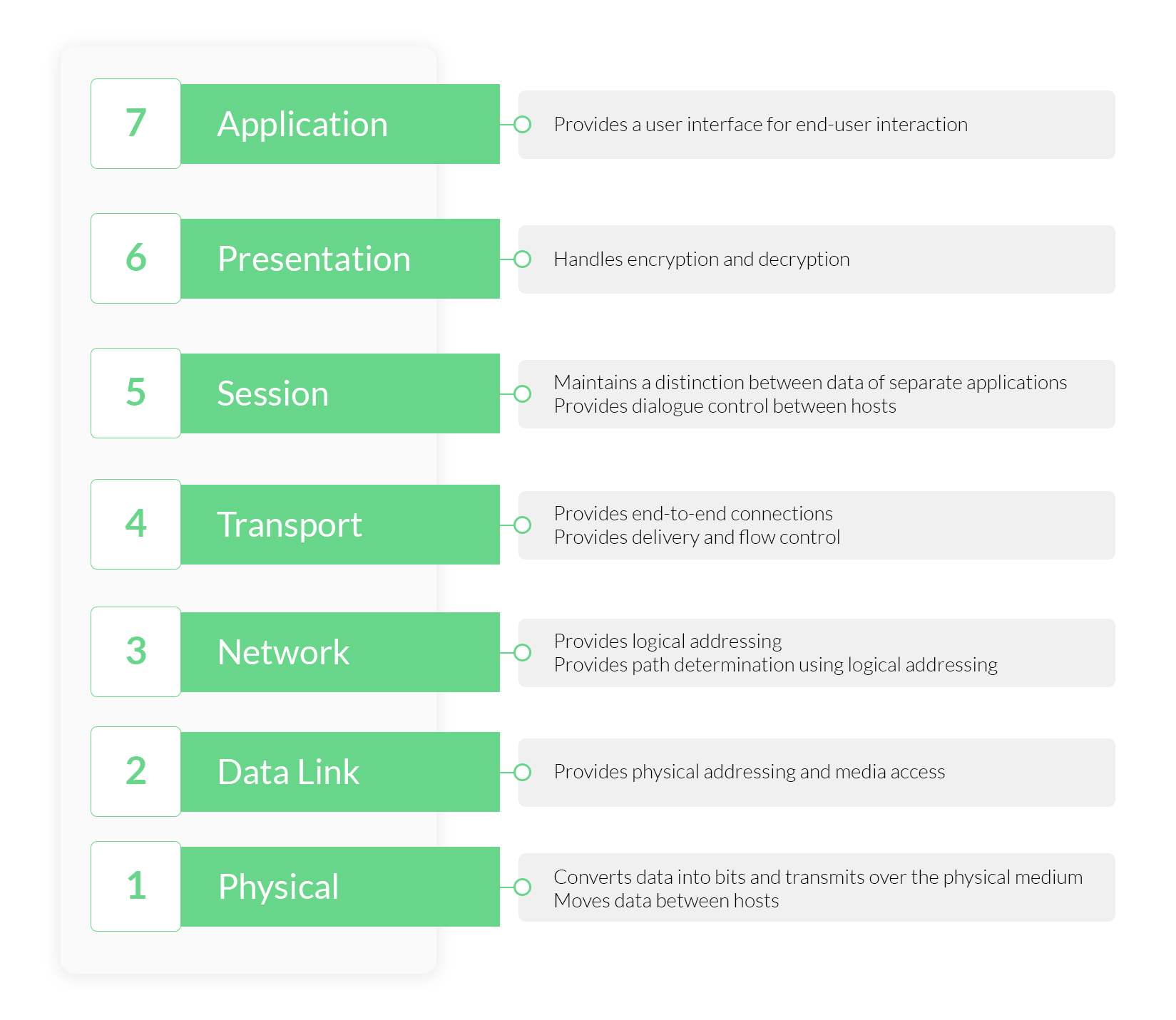 OSI est un modèle standard pour les protocoles réseau et les applications distribuées qui sépare le fonctionnement d'un réseau en sept couches différentes en fonction de ses fonctionnalités. Chaque couche remplit un ensemble différent de fonctions et est indépendante des autres couches.