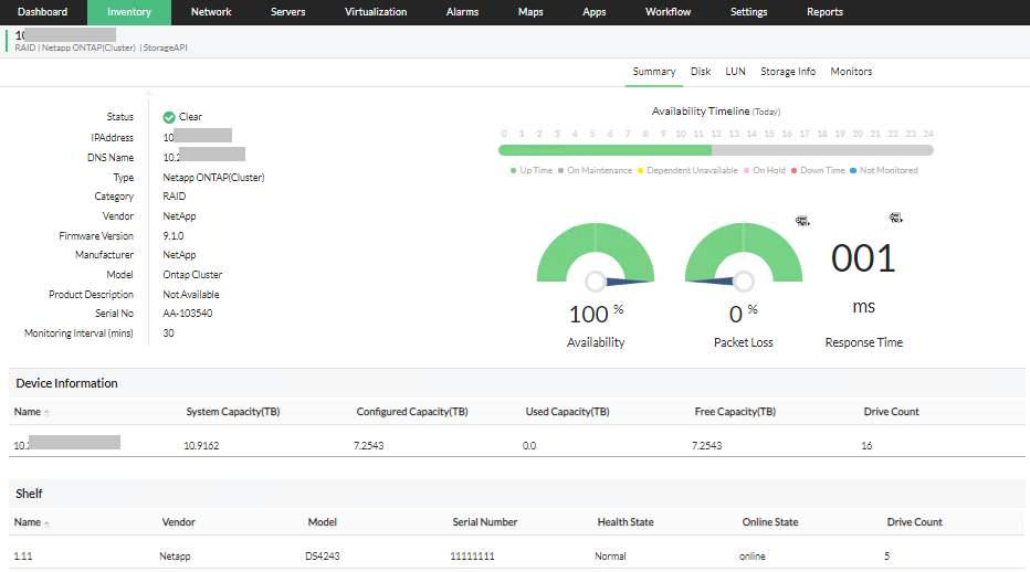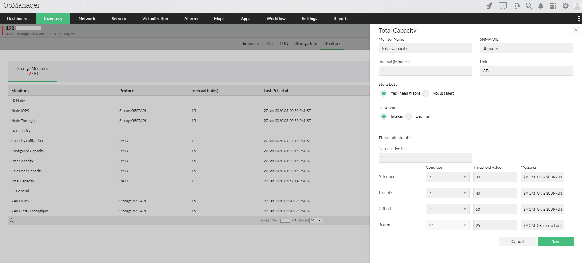 Voici comment OpManager peut vous aider à analyser efficacement vos appliances de stockage NetApp :