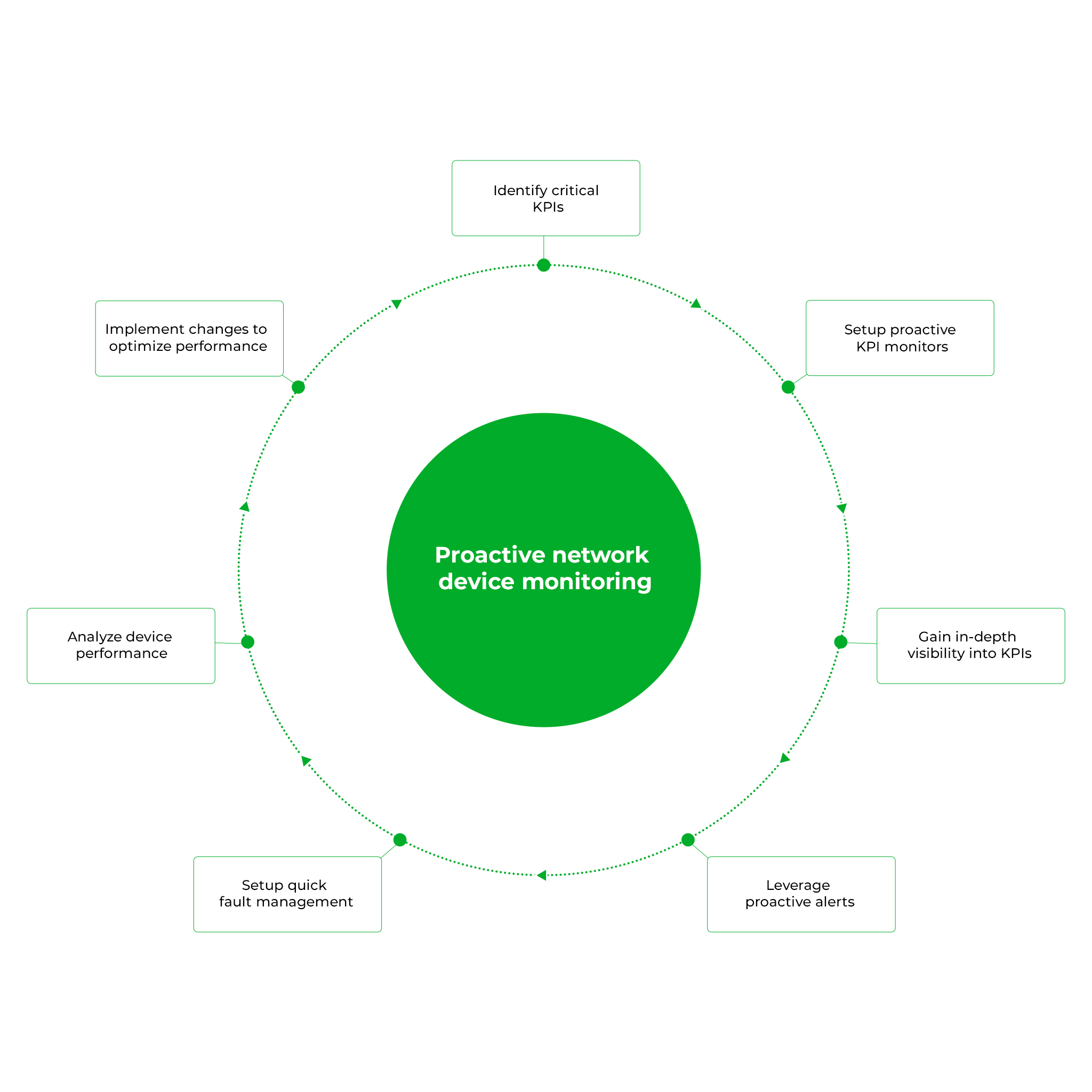 Une seule minute d'indisponibilité peut causer des milliers et des millions de dollars de pertes. Pour garantir la cohérence des performances du réseau et obtenir une efficacité optimale, l’analyse des périphériques réseau est essentielle. La surveillance proactive des périphériques réseau garantit un retour sur investissement maximal pour le budget informatique d'une organisation.