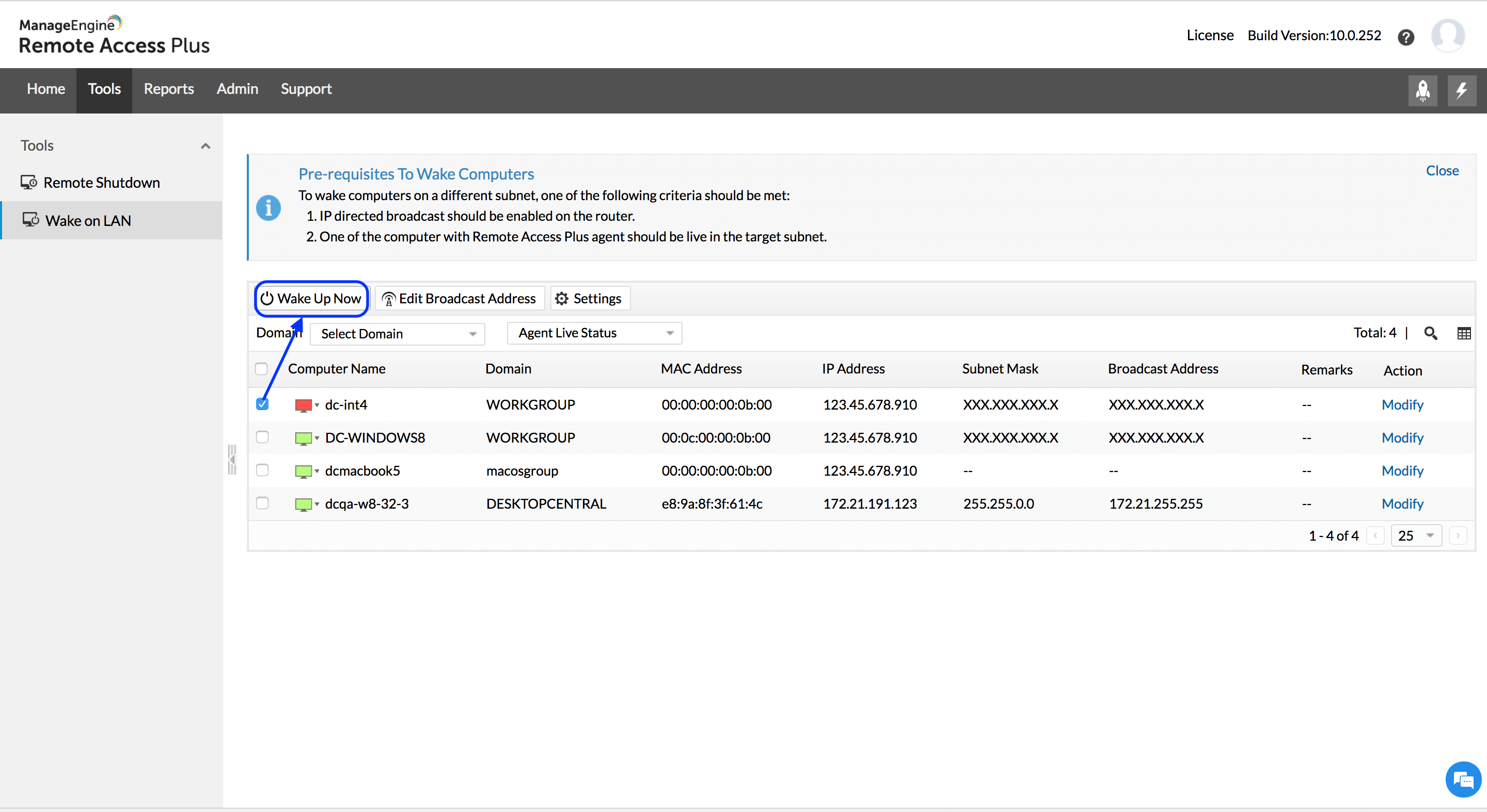 Fonctionnalités de l’outil Wake on LAN de Remote Access Plus