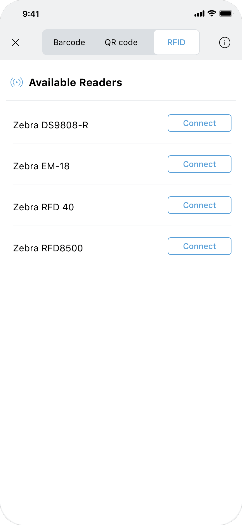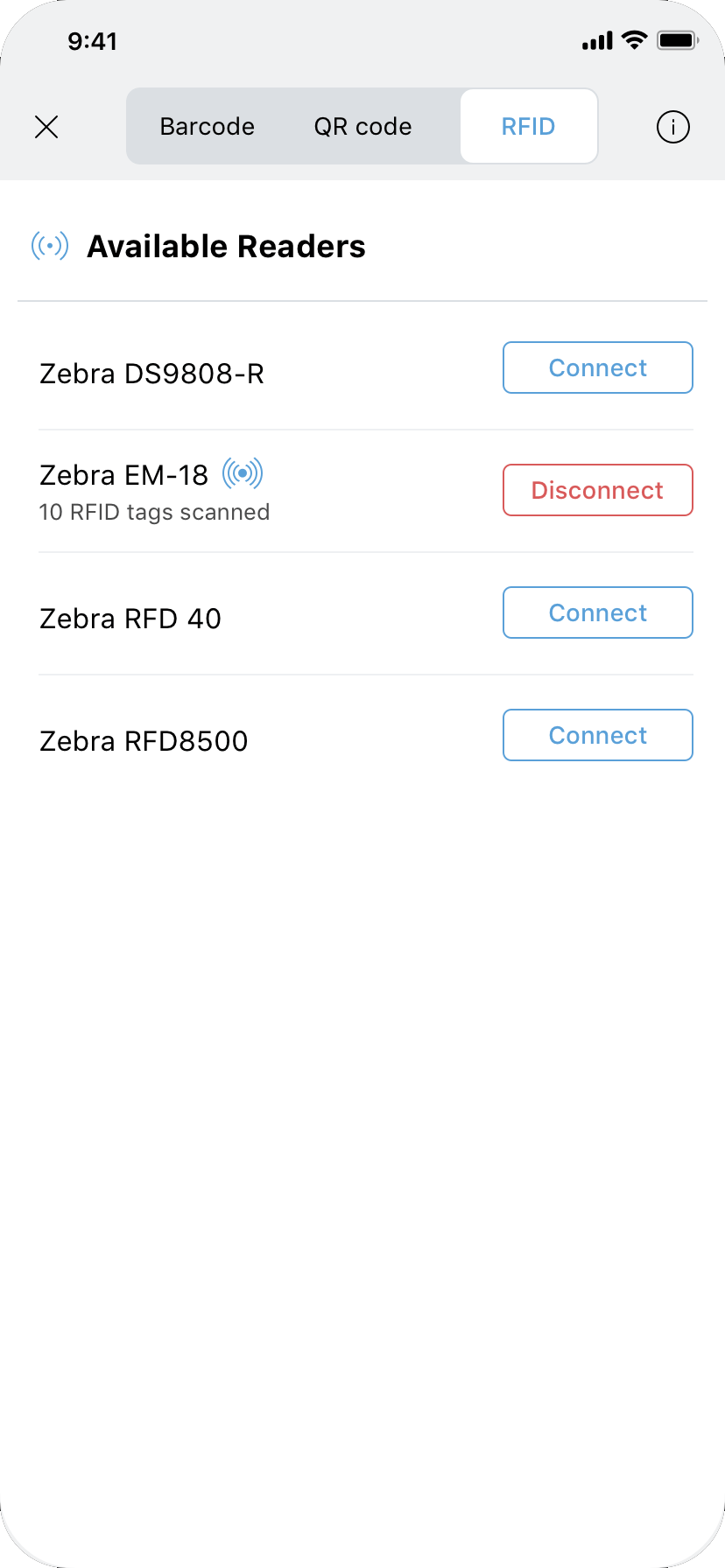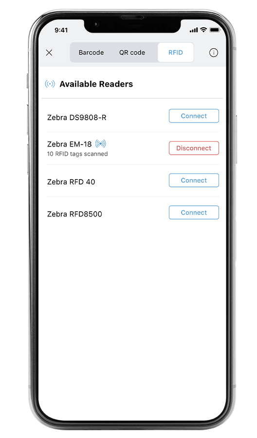 L’entreprise établit d’abord une connexion Bluetooth entre plusieurs lecteurs RFID et le téléphone portable. Actuellement, la lecture RFID est disponible dans l’application de l’iPhone, et cette version prend en charge les lecteurs RFID Zebra.