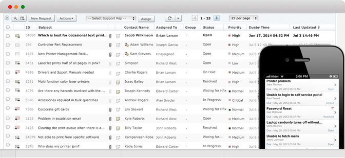 SupportCenter Plus améliore l'efficacité et la productivité de votre système de support en offrant un accès mobile 24 h sur 24, 7 J sur 7, depuis votre appareil iPhone ou Android. Changez votre manière de gérer votre centre d'assistance en travaillant sur vos demandes et vos conversations où que vous soyez.