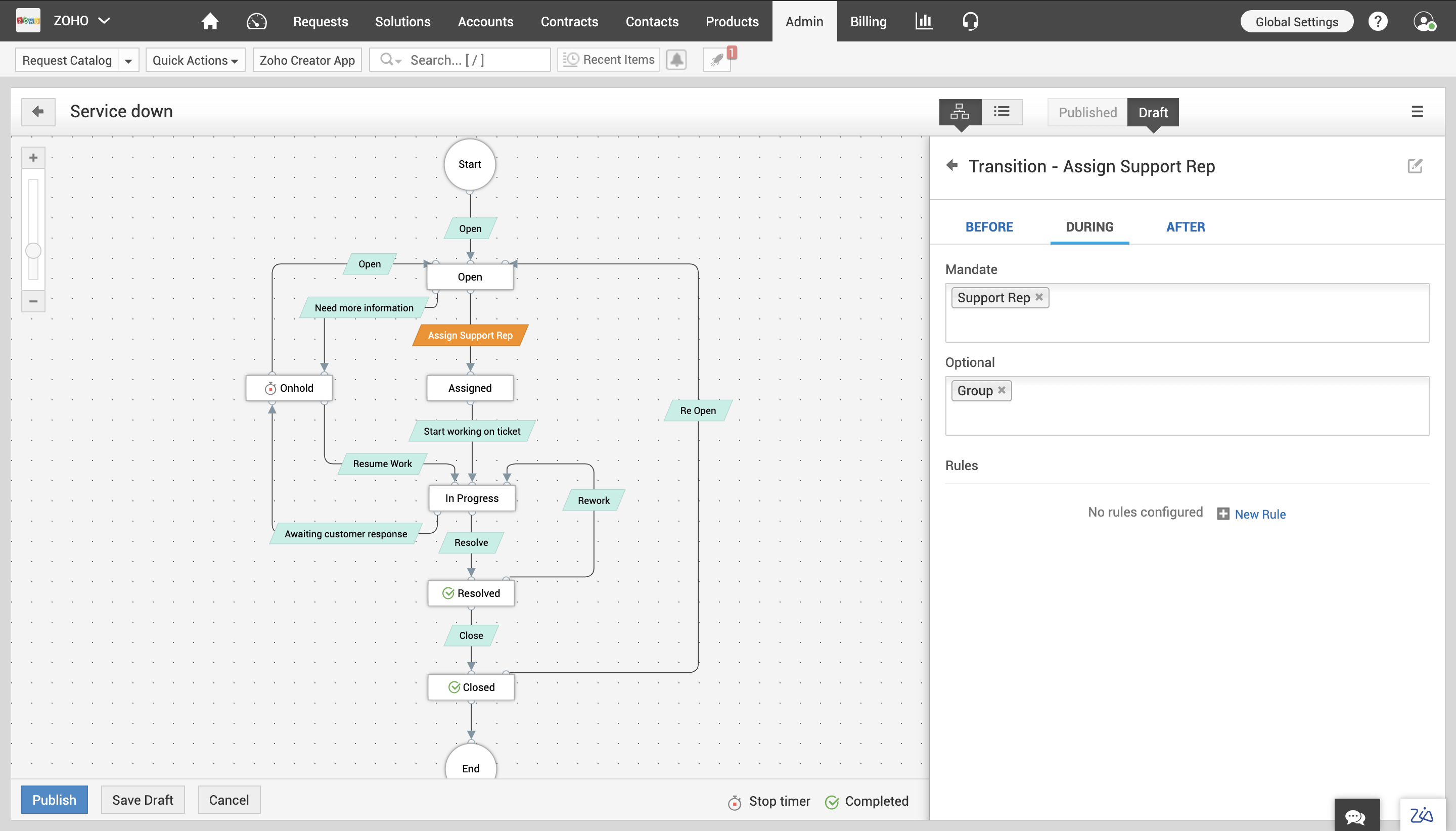 - Faites passer les tickets de support à travers une procédure déterminée avec des cycles de vie des demandes prédéfinis.