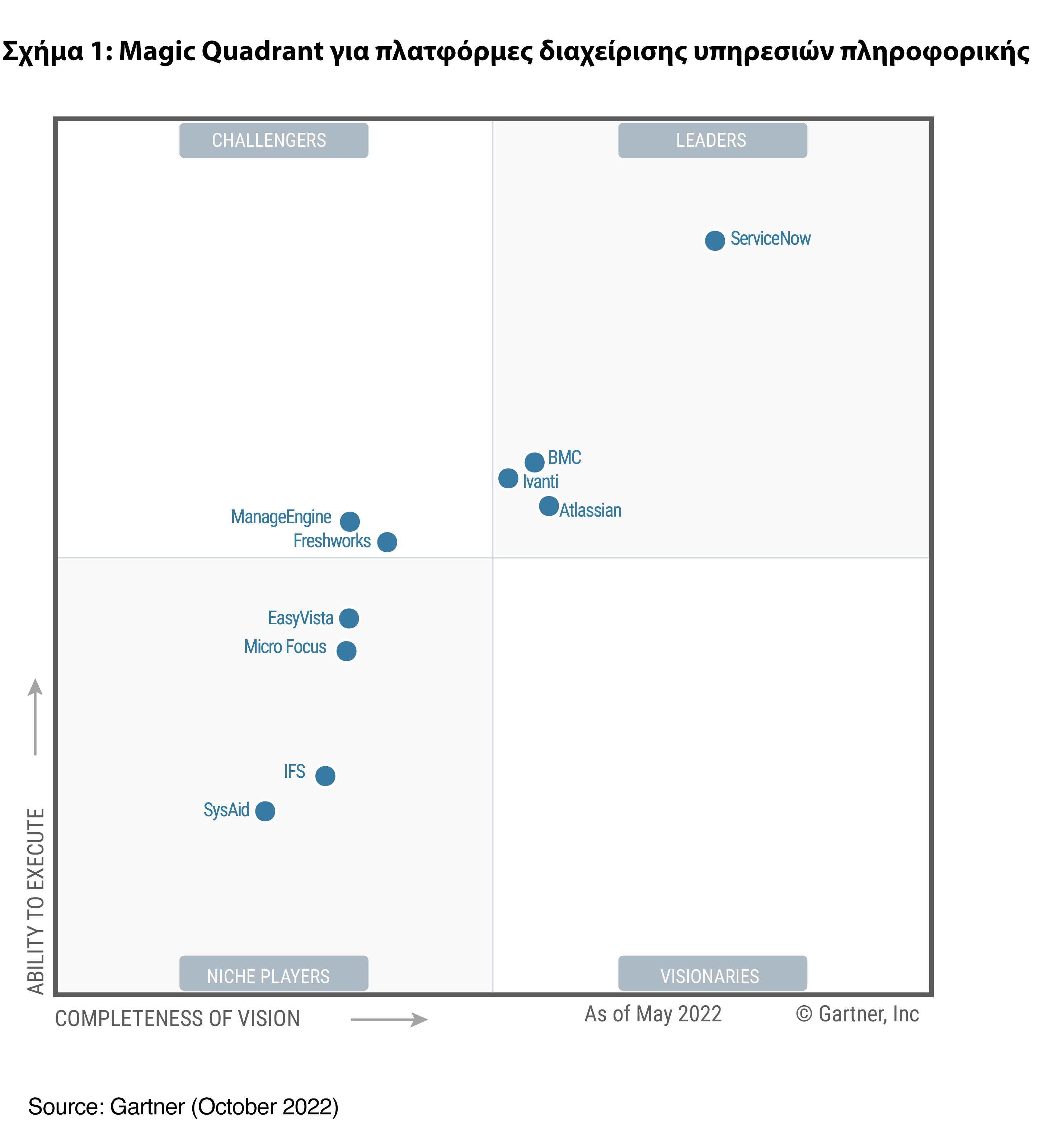 Gartner, Magic Quadrant για πλατφόρμες διαχείρισης υπηρεσιών πληροφορικής. 31 Οκτωβρίου 2022, Rich Donehy, Chris Matchett, Siddharth Shankar Shetty