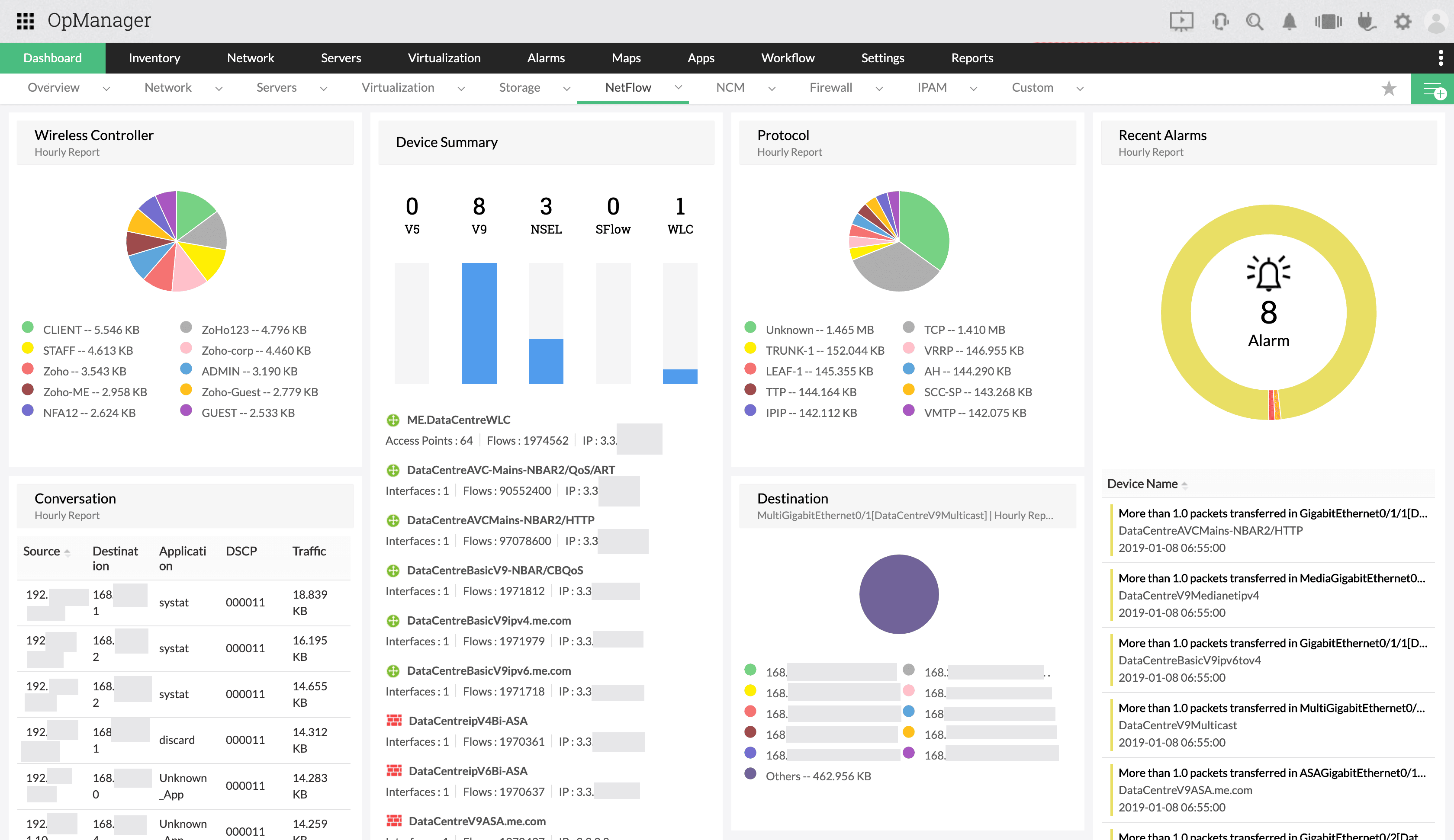 Solusi monitoring seperti ManageEngine OpManager menyediakan monitoring berbasis SNMP, WMI, dan API untuk mengumpulkan data performa dari berbagai perangkat jaringan secara real-time.