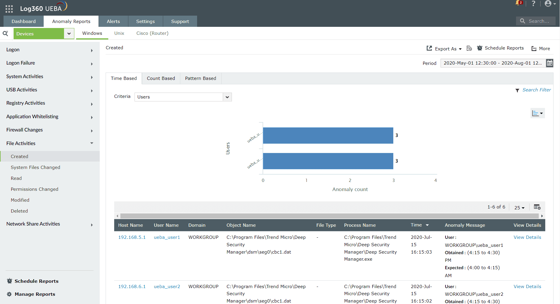 Anomaly report Log360