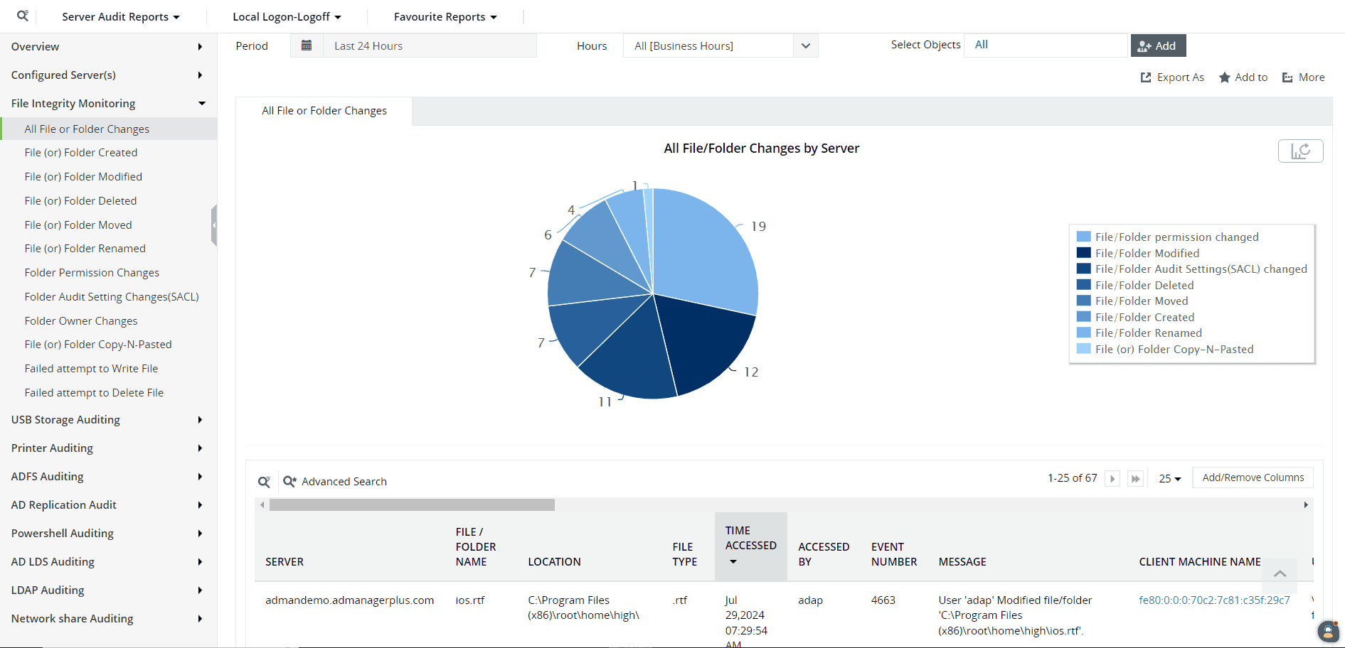 Aktivitas file dan folder seperti pembuatan, penghapusan, akses, modifikasi, hingga perubahan nama, termasuk percobaan yang gagal.
