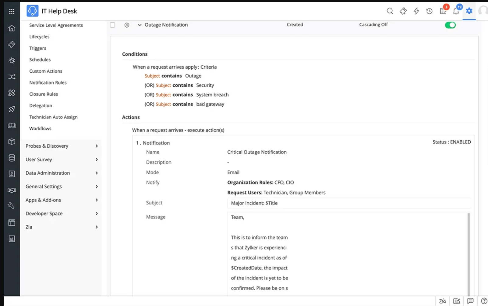 Automation dan workflow memungkinkan berbagai proses berjalan secara otomatis, seperti assignment tiket, notifikasi, hingga eskalasi. Hal ini membantu mengurangi pekerjaan manual dan mempercepat proses penanganan.