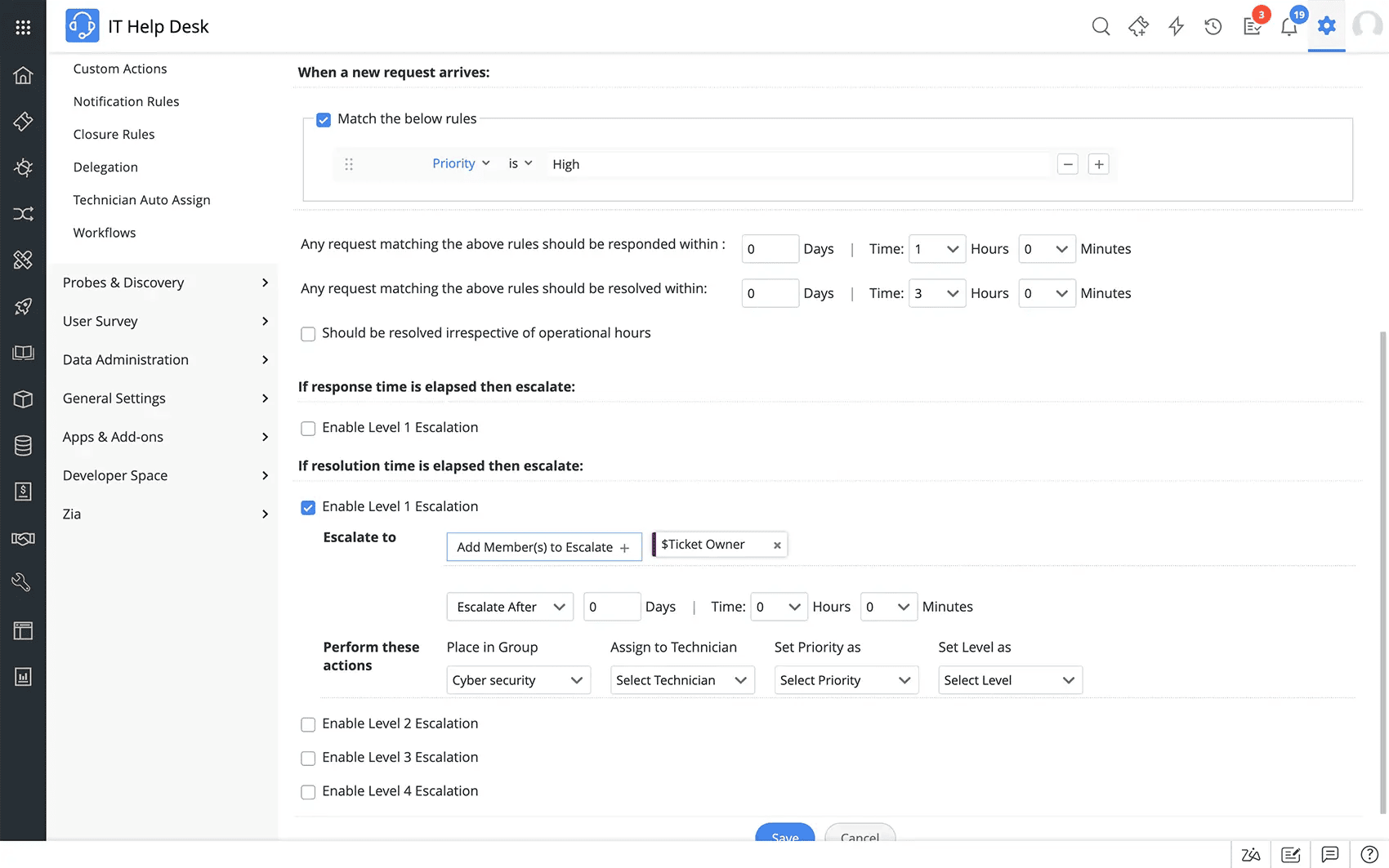 Manajemen SLA dengan konfigurasi eskalasi tiket
