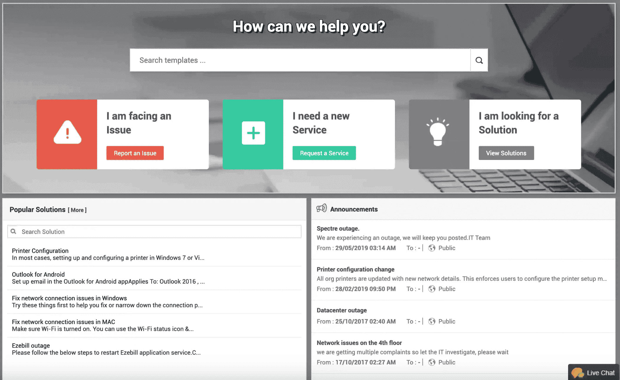 Portal self-service adalah platform yang memungkinkan pengguna menyelesaikan masalah IT atau mengajukan permintaan layanan secara mandiri tanpa harus selalu menghubungi tim IT. Portal ini biasanya dilengkapi beberapa fitur utama yang bisa mengoptimalkan praktik ITSM, antara lain: