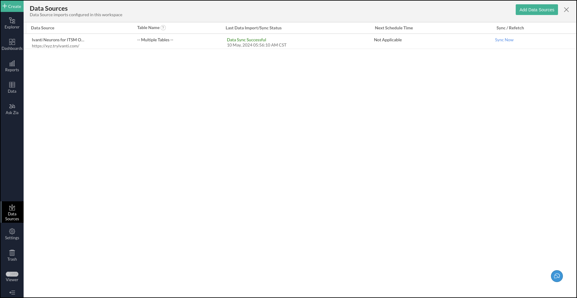 Yes. To do this, click the Data Sources option from the side panel. In the page that appears, navigate to the Ivanti Neurons for ITSM On-Premise source and click the corresponding Sync Now button.
