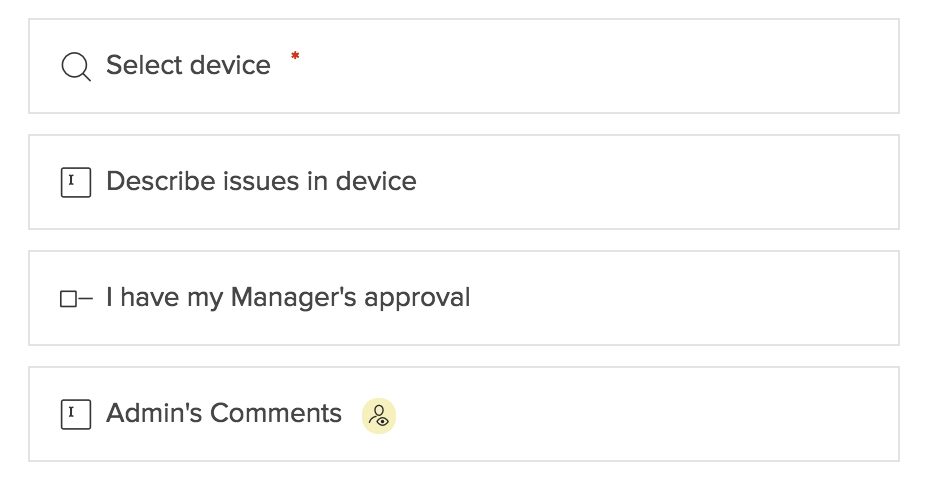 An icon will appear next to that field's name in the builder, like the Admin's Comments field below: