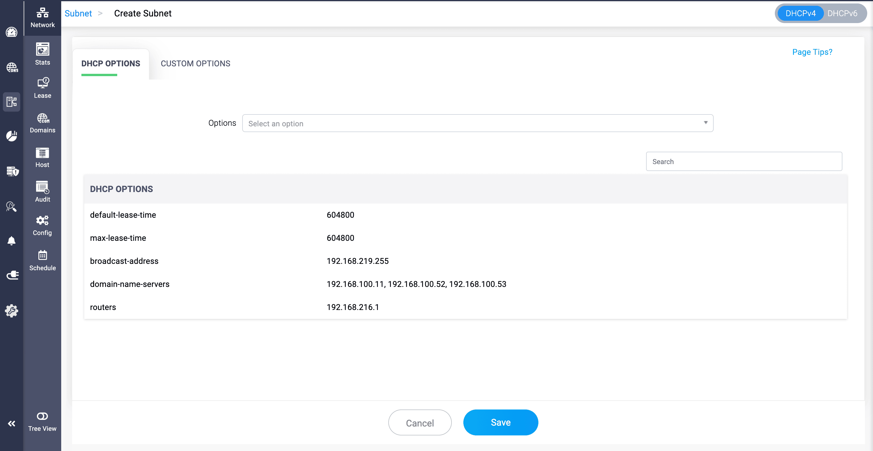 - To create or update a subnet go to DHCP-> Network-> Subnet