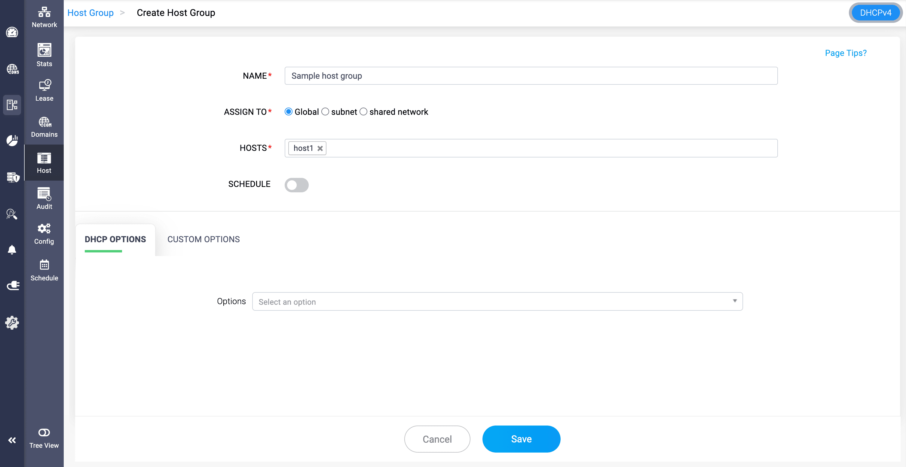 SCHEDULE: Schedule when this reservation should be active. Activate it for time-bound temporary reservations.DHCP OPTIONS: Select standard DHCP options (e.g., router, DNS server, lease time) for the host.CUSTOM OPTIONS: Tailor your own custom DHCP options that suits your complex requirements (e.g., vendor-specific options).Click Save to finalize the configurations.