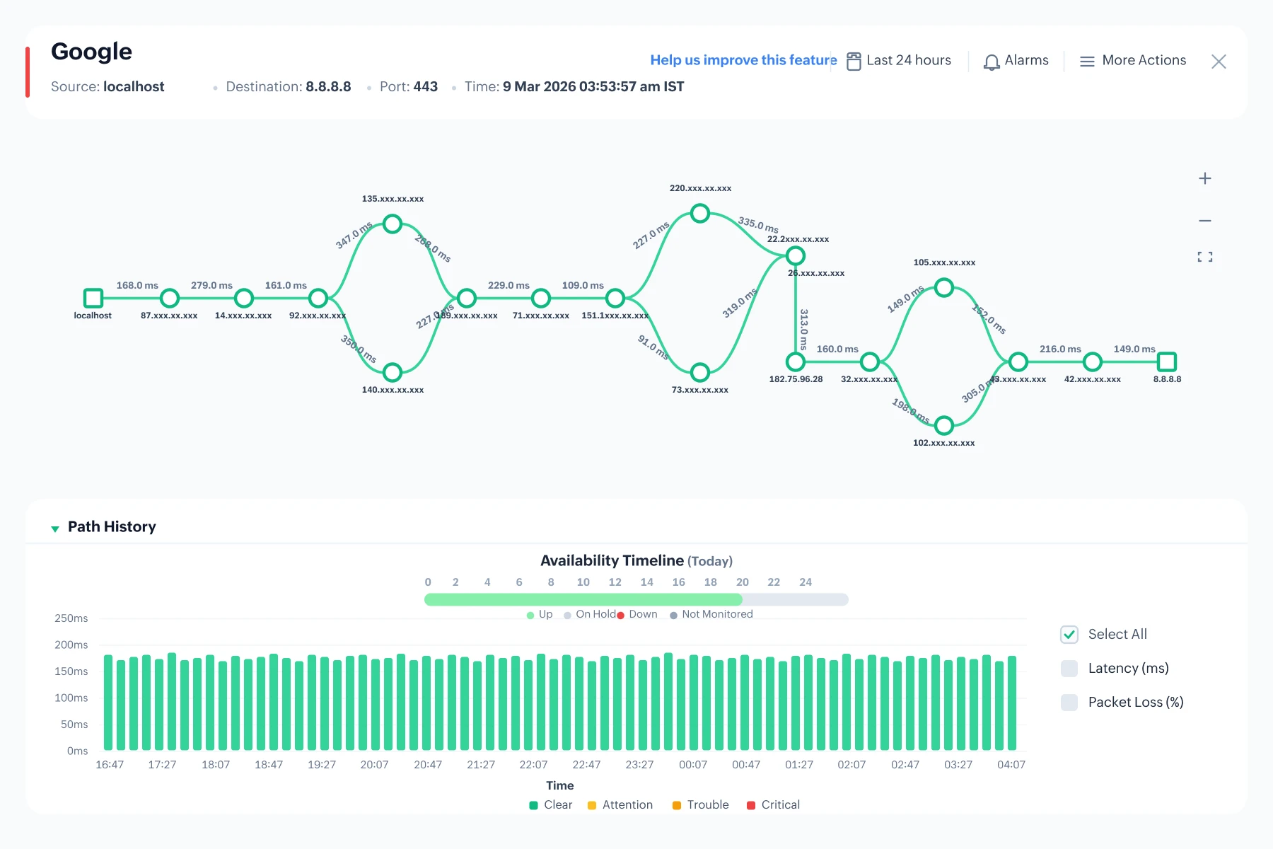- Monitoring connectivity between on-premises and cloud infrastructure