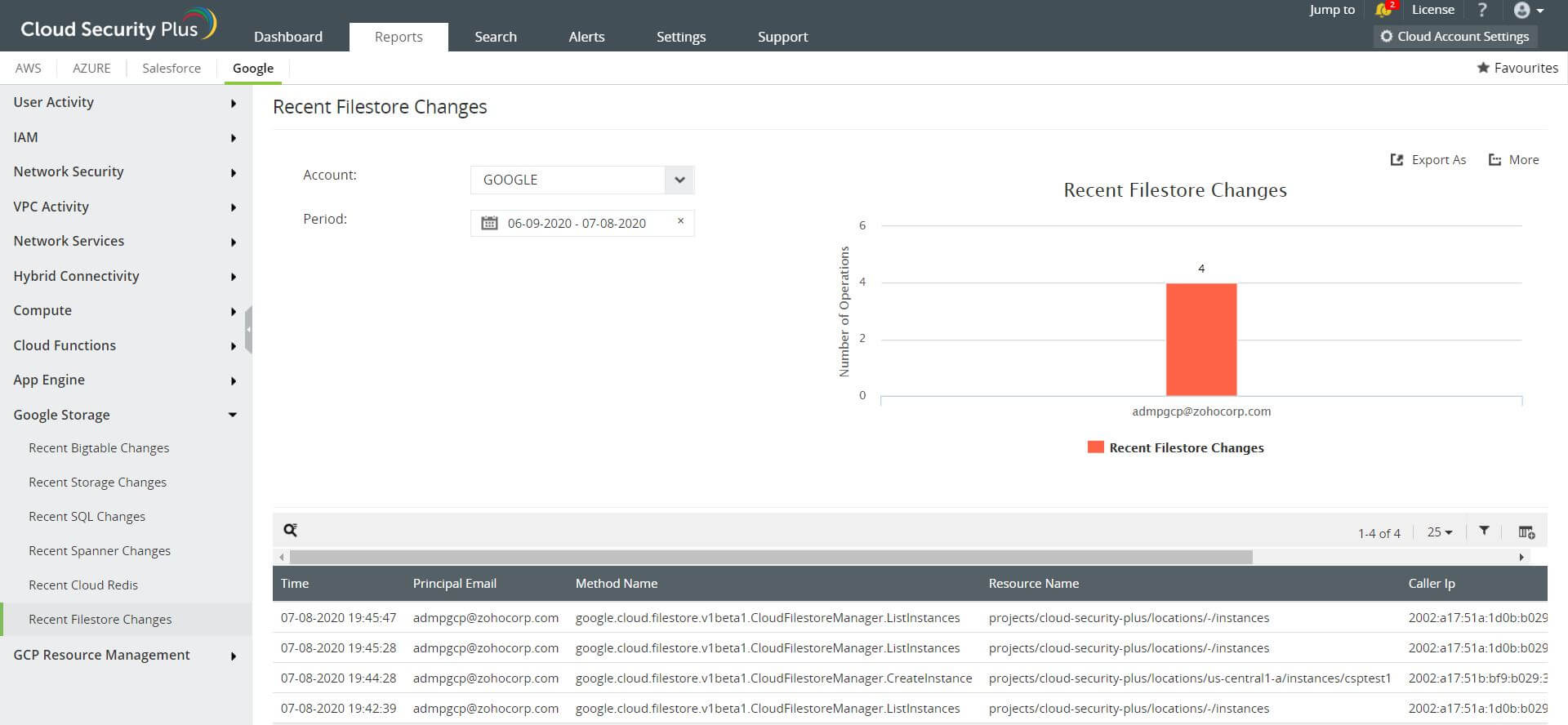 Log360 is a reliable Google Cloud Filestore monitoring tool that lets you: