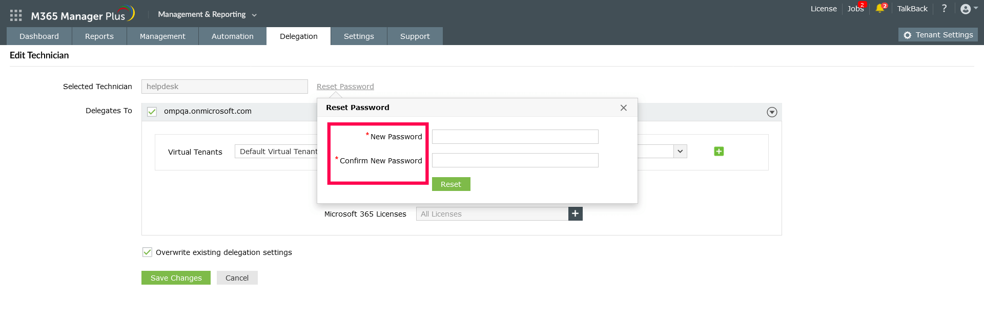 - On the Edit Technician page, click Reset Password.
