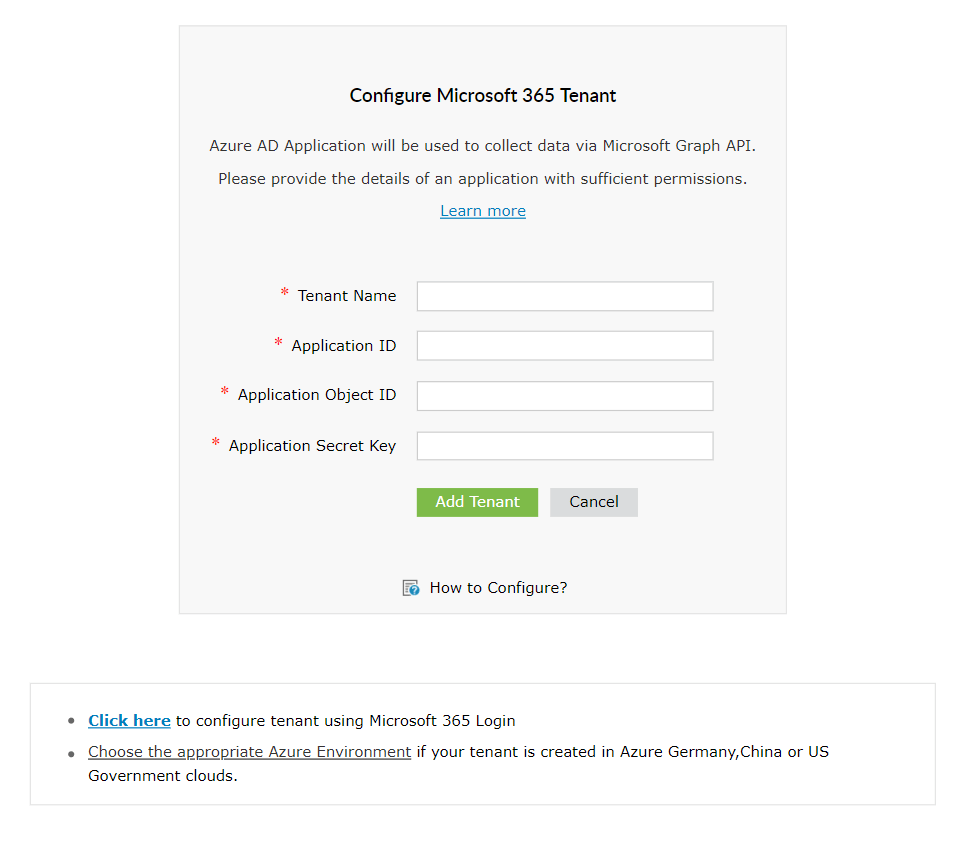 - Return to the M365 Manager Plus console where you have the Configure Microsoft 365 Tenant pop-up.