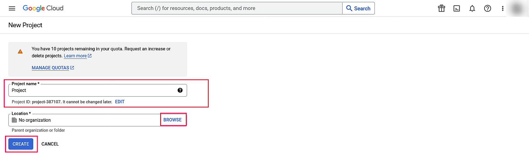 - In the dashboard, select any existing project or click New Project from the project dropdown list.