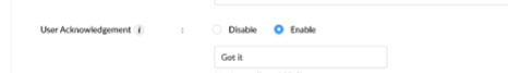 - Click on Enable beside the User acknowledgement message, and provide a message.