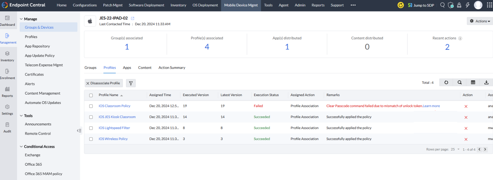 - At last, reset the Passcode policy within the failed profile and then try associating it to the device.