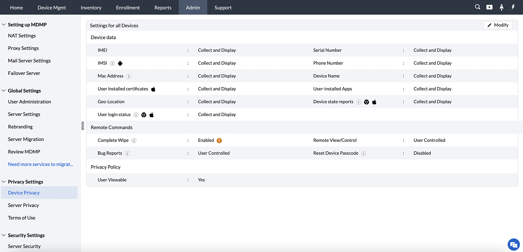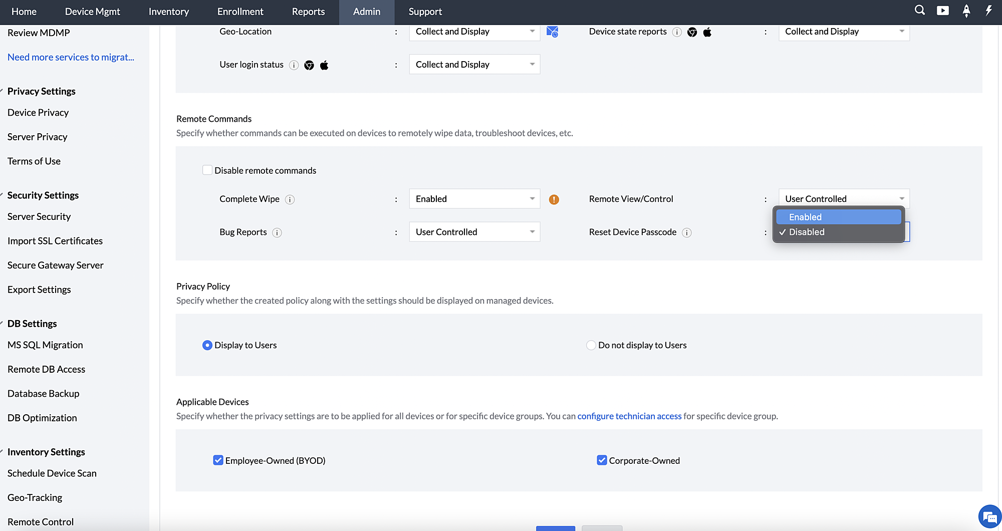 1. Unable to clear passcode in this device as Reset Device Passcode is disabled under Admin → Device Privacy Settings.