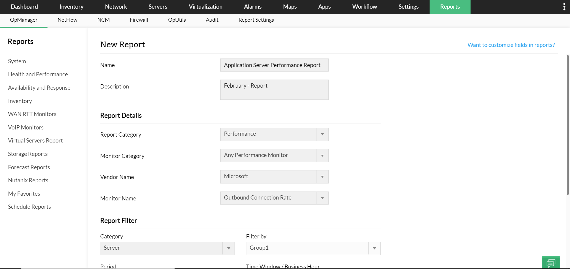 - Reports: Reports are useful to identify performance degradation and documentation purposes. OpManager lets you generate reports on networking devices. These reports provide in-depth data on device performance. OpManager offers more than 200 prebuilt reports. Reports can also be exported, scheduled, and easily customized for your requirement.