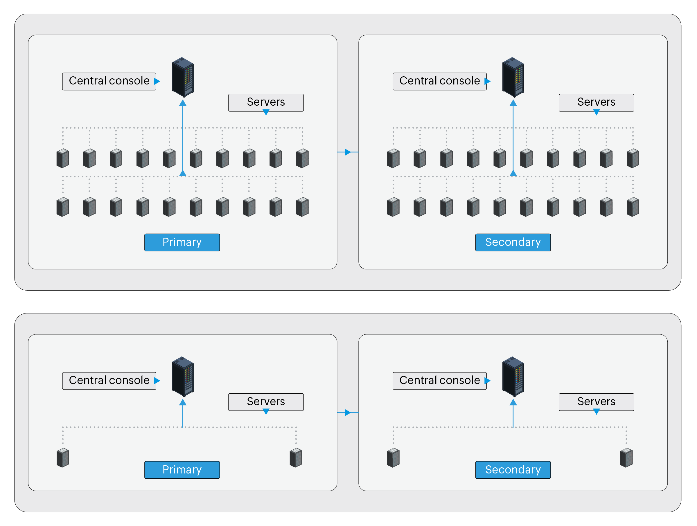 You can have 500 devices monitored per probe or the NMS instance and have 20 monitoring installations. Being the part of enterprise luxury, you have to provide the same amount of stand-by servers. This is again topped up with the central primary and secondary servers. In total you will have 42 devices to manage.
