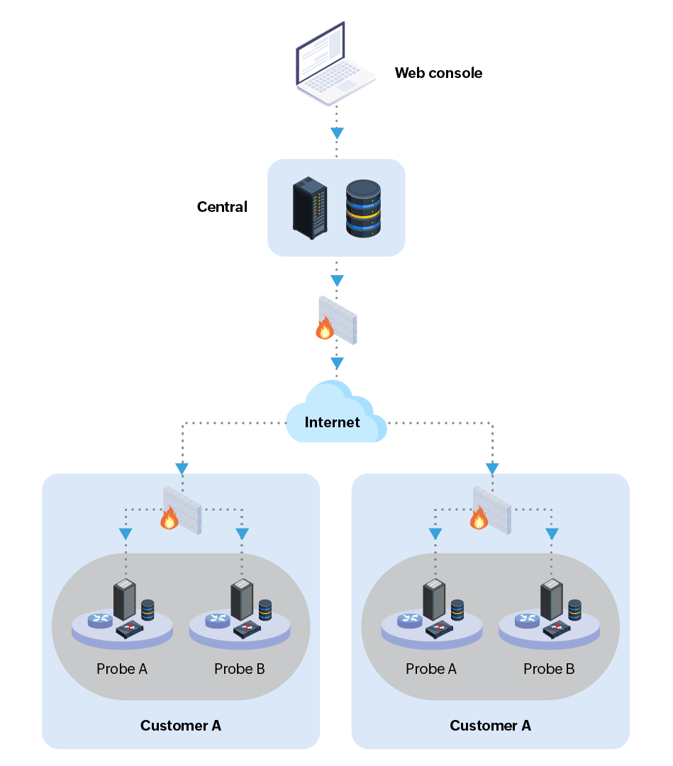 Alternatively you can manage them with 2 remote probes which are highly scalable. Here the number for servers sum up to just 6. Which one would you prefer? Though with server virtualization provisioning 40 servers is not a big thing, but the cost of OS and regular patching will certainly be a pain.