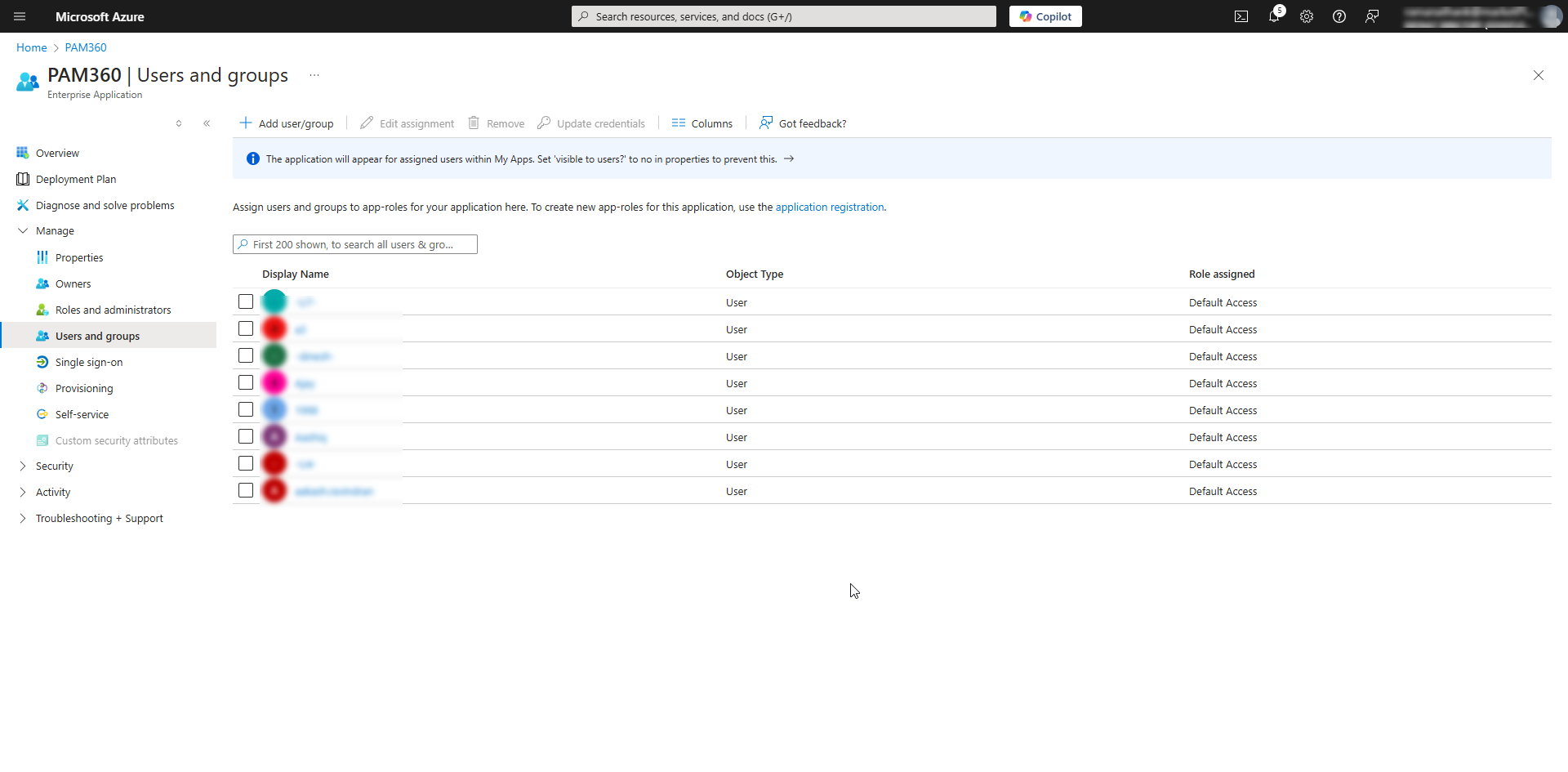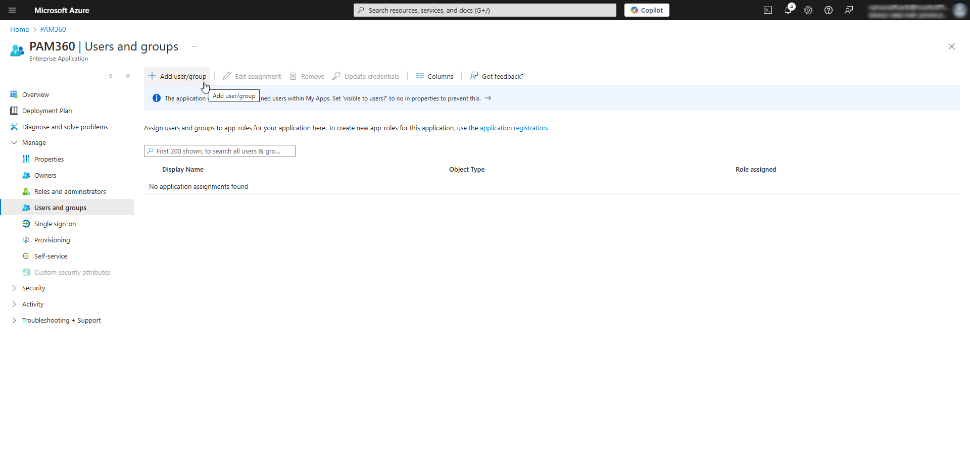 Follow these steps to assign Entra ID users to the PAM360 enterprise application: