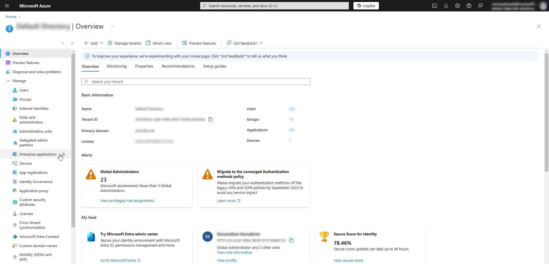 - On the Directory page, Select Manage >> Enterprise Applications from the left pane.