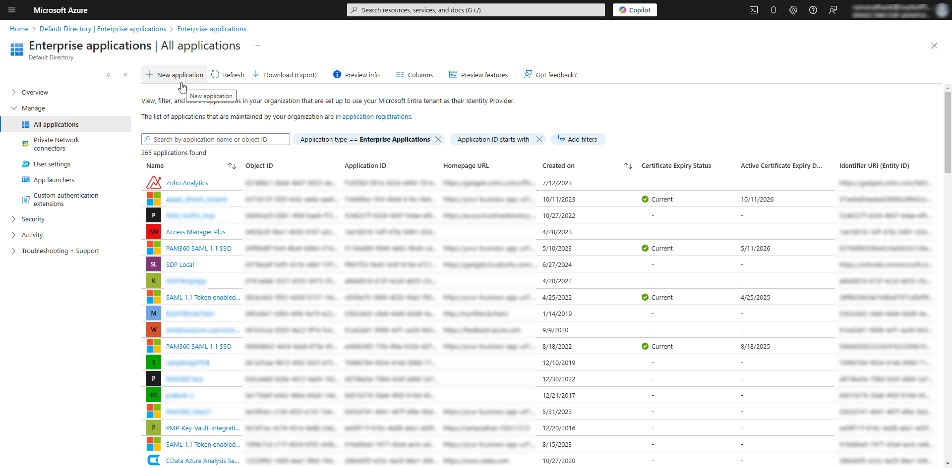 - Log in to the Azure portal and access the PAM360 Enterprise Application page.