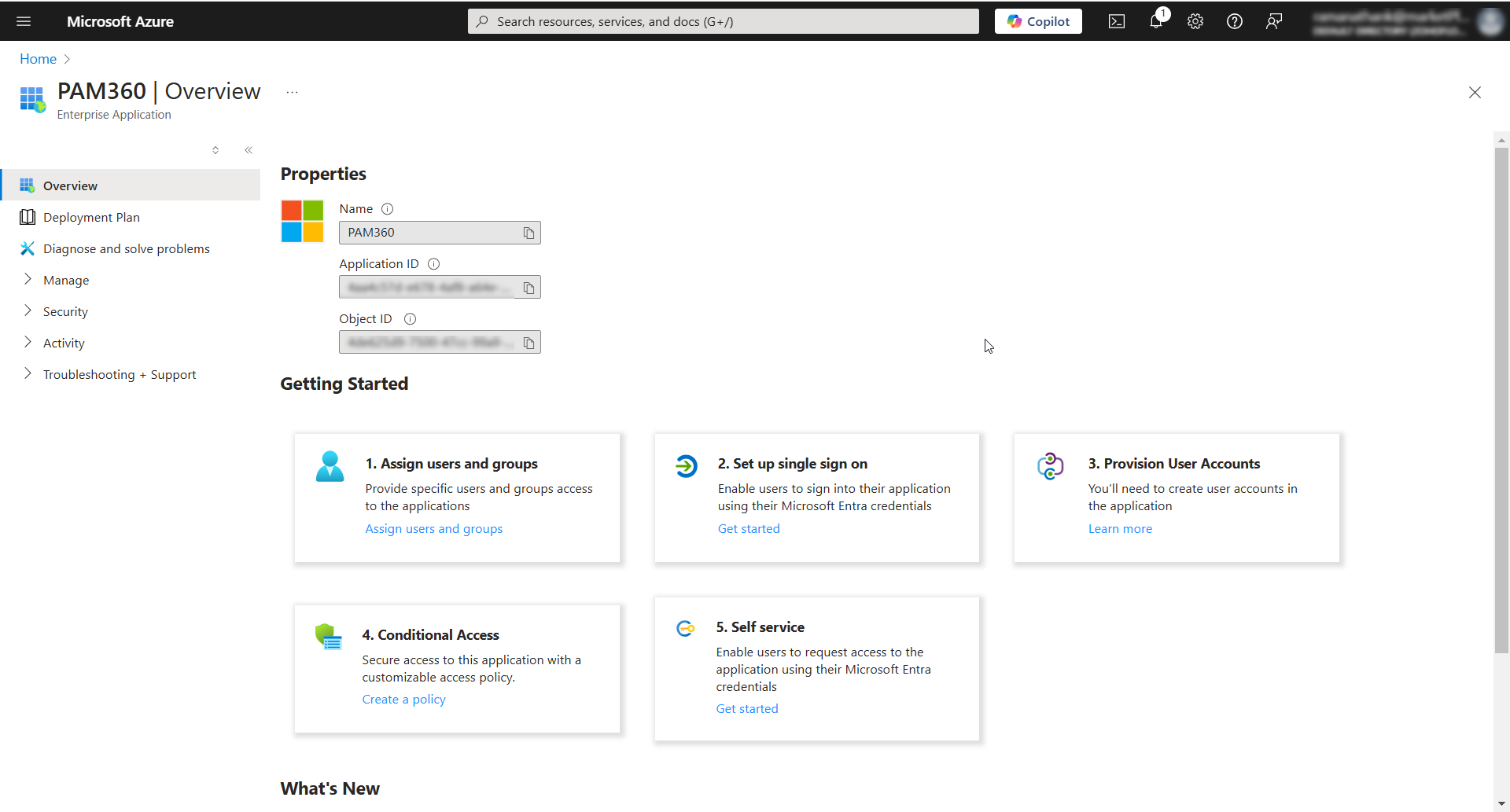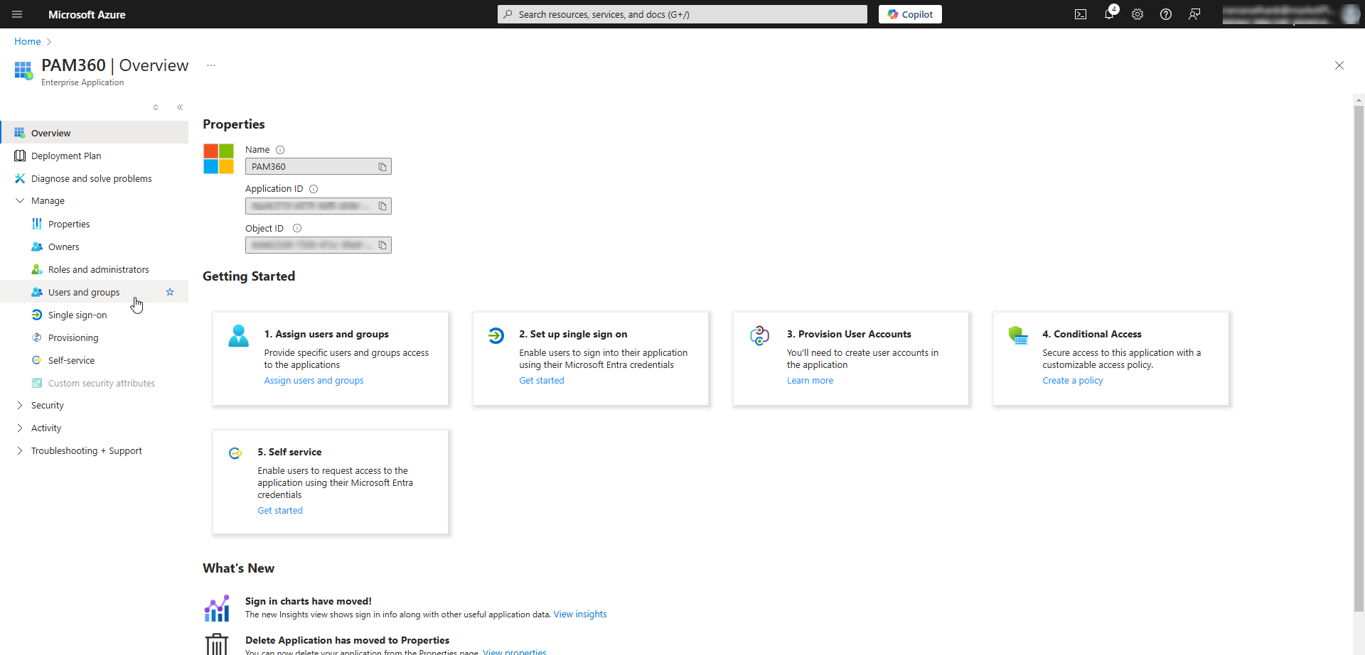 - Now, PAM360 will be added as an enterprise application on the Microsoft Entra ID Portal. You will be redirected to the newly added Enterprise Application page.