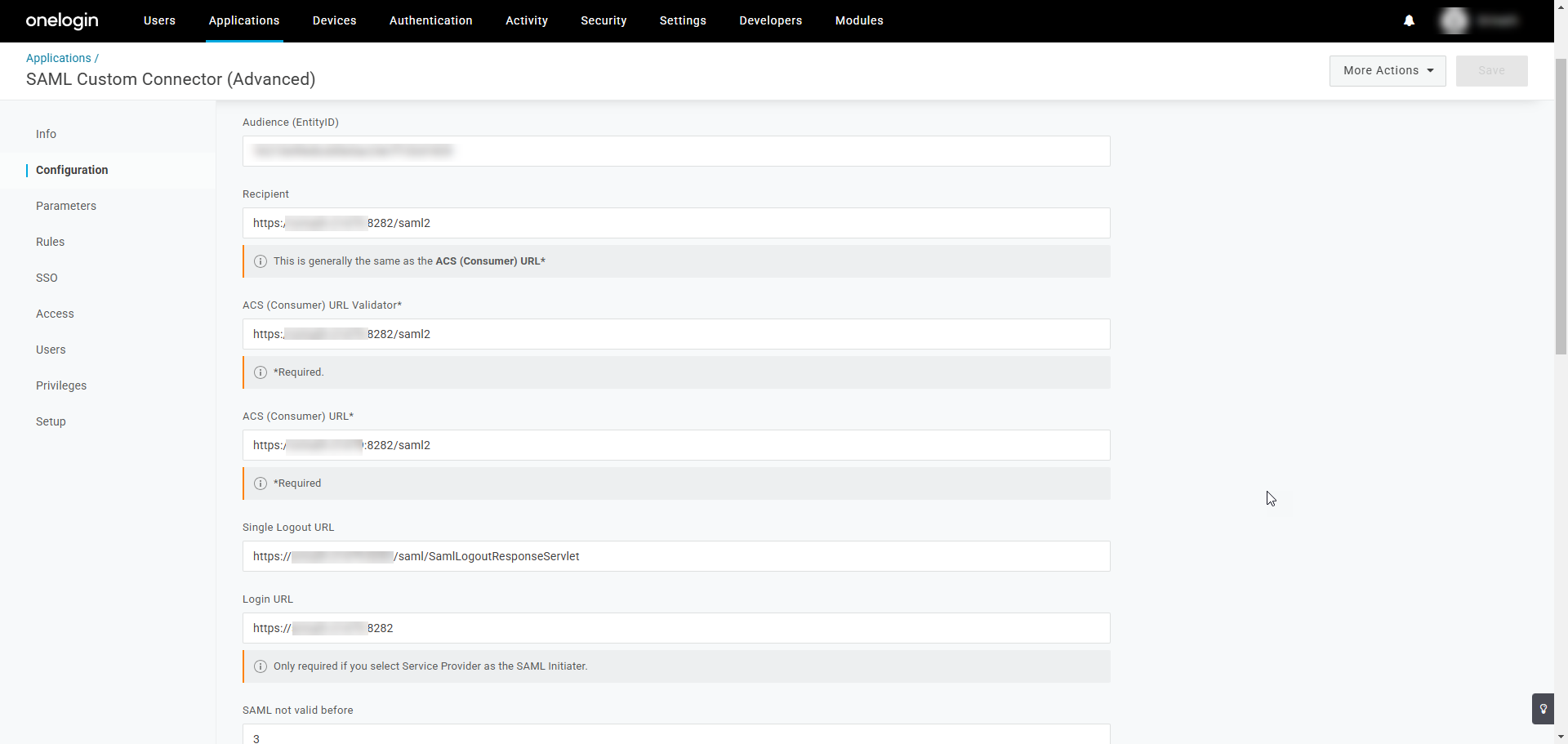 - SAML not valid before - Enter the duration (in minutes) before the assertion's timestamp during which it is not considered valid.