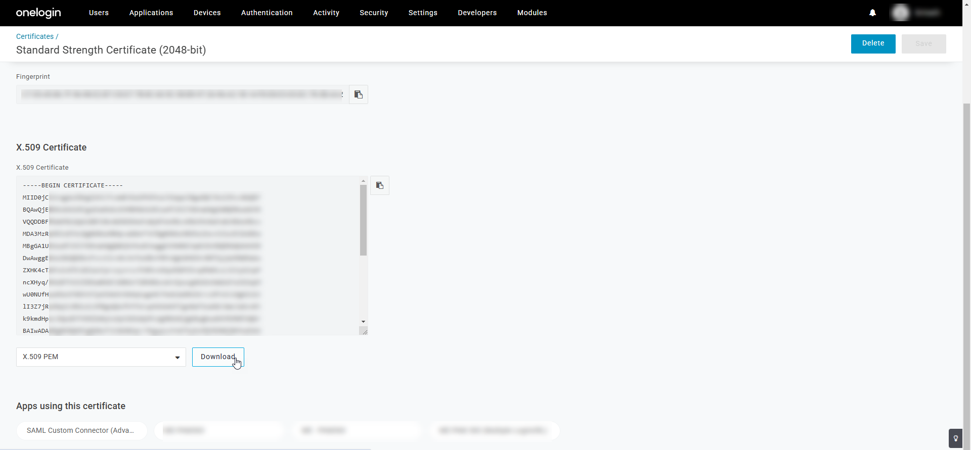- In the certificate details page that appears, scroll down to the end of the page and click the Download button to download the IdP certificate to your machine.