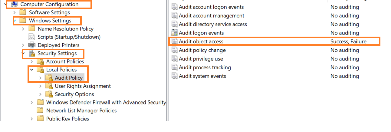 • Step 1: Enable 'Audit object access' policy