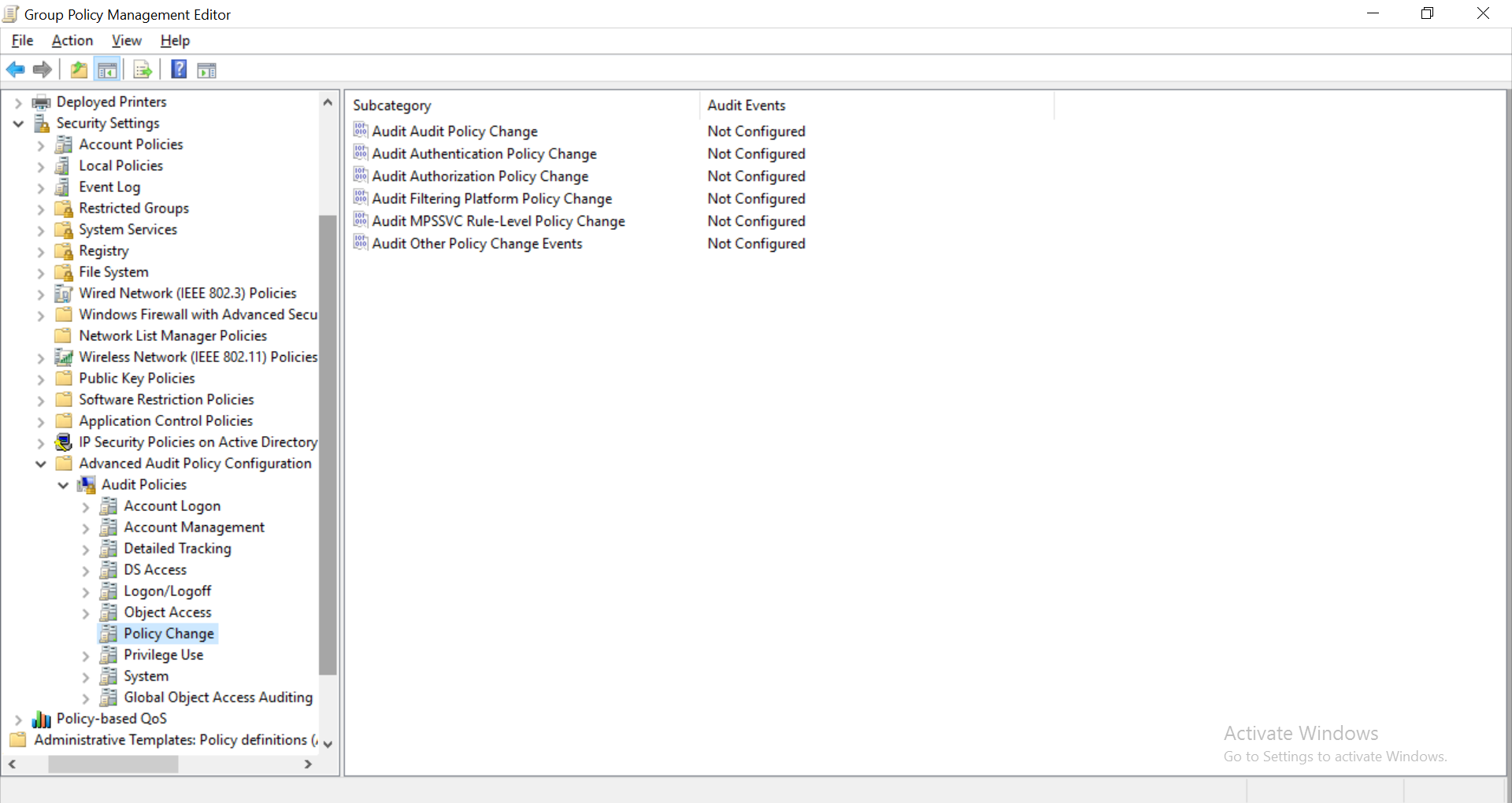 • In the group policy editor, navigate to Computer Configuration > Windows Settings > Security Settings > Advanced Audit Policy Configuration.