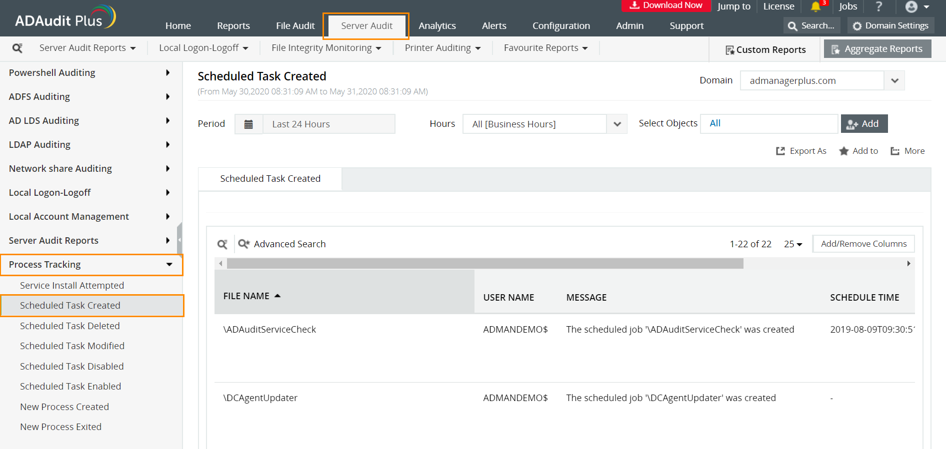 Tracking scheduled tasks in ADAudit Plus