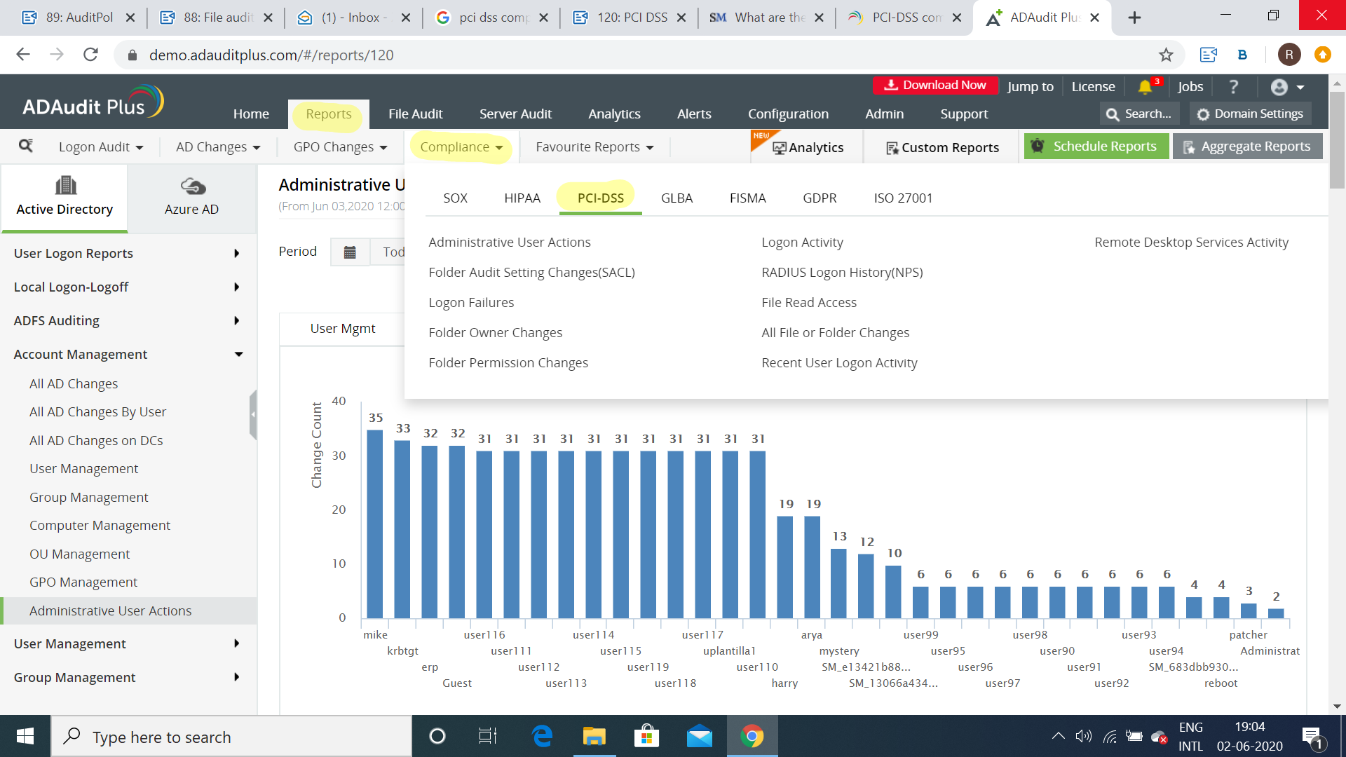 Managing PCI DSS using ADAudit Plus